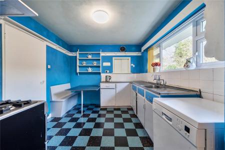 To the rear, the kitchen is well laid out with ample storage and worktop space, complemented by a useful utility room and a ground floor cloakroom.