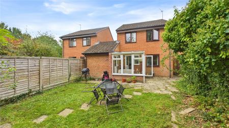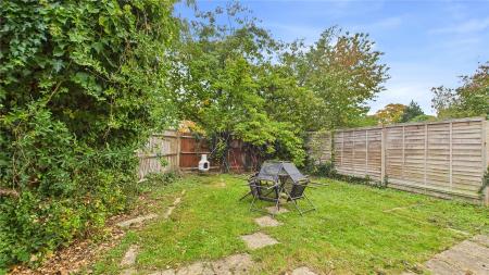 Set against a wooden back-drop, the rear garden offers a private and low-maintenance outdoor space, perfect for summer dining or gardening enthusiasts.