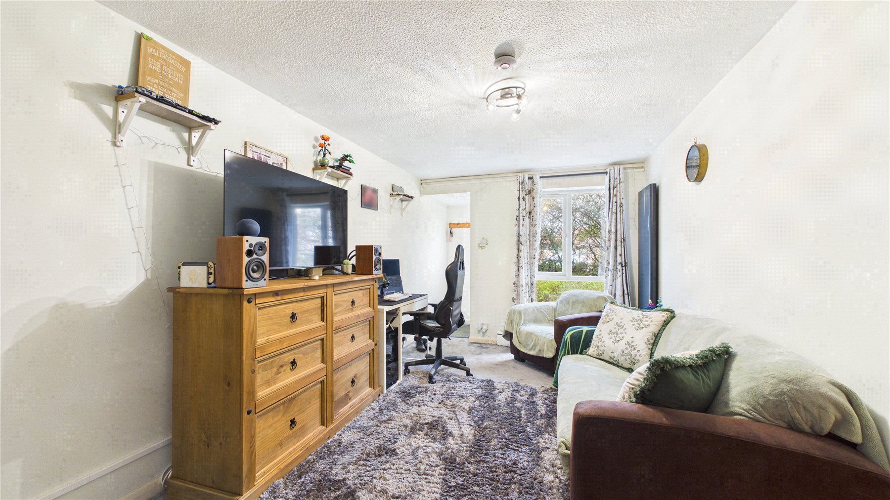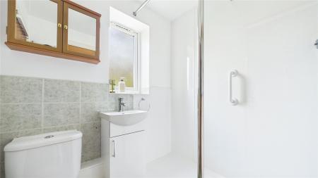 The bedroom is a generous double, offering built-in storage potential and a pleasant outlook. The bathroom is conveniently located off the hallway and is fitted with a modern white suite.