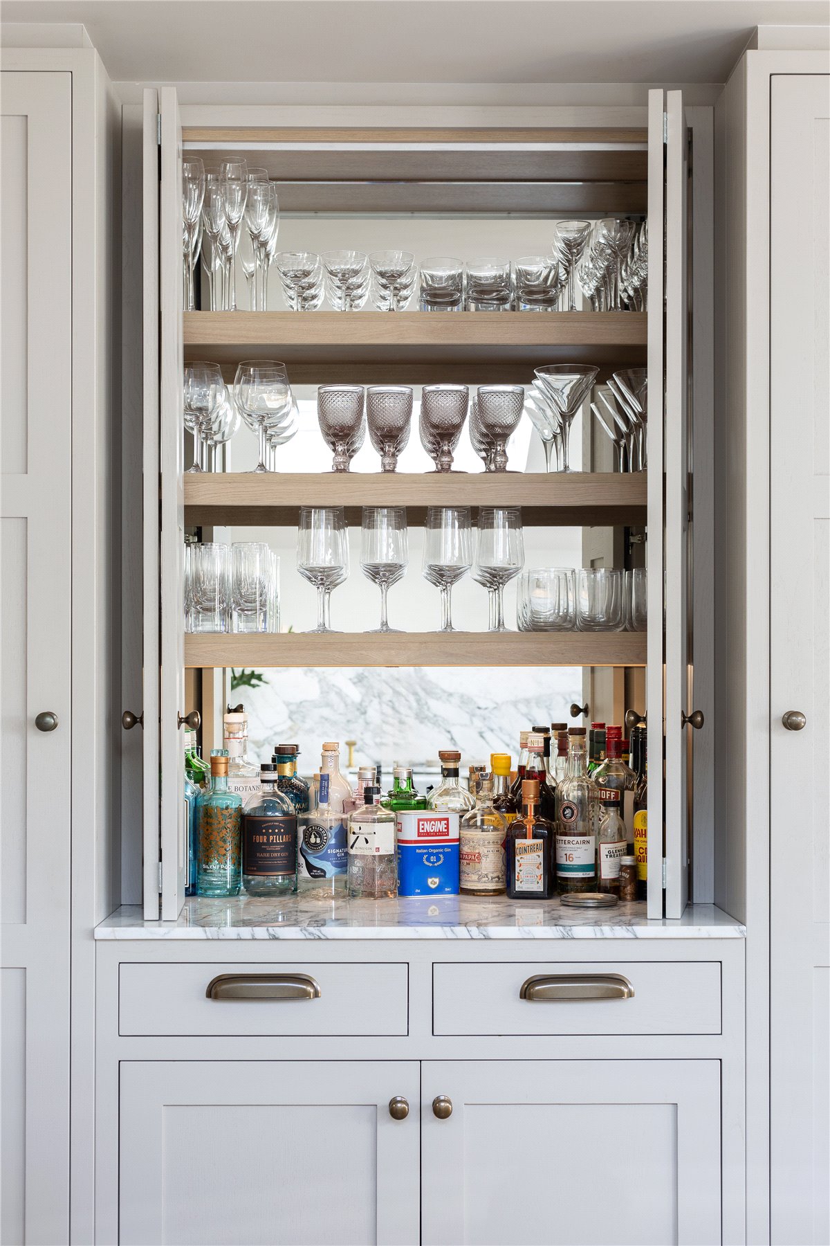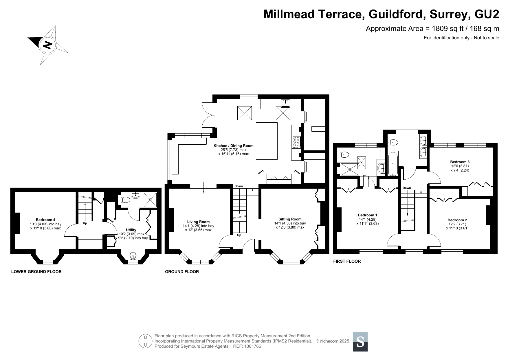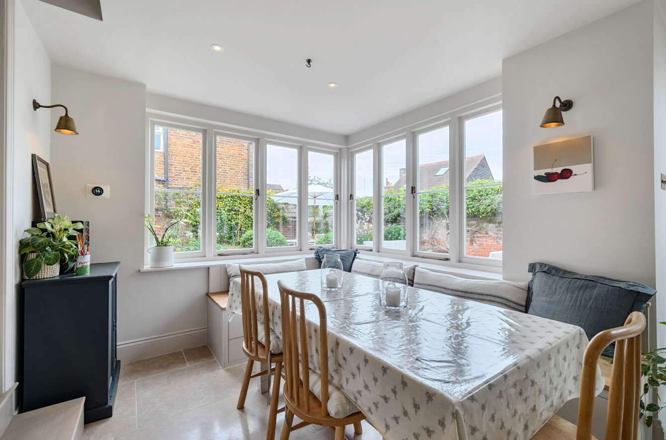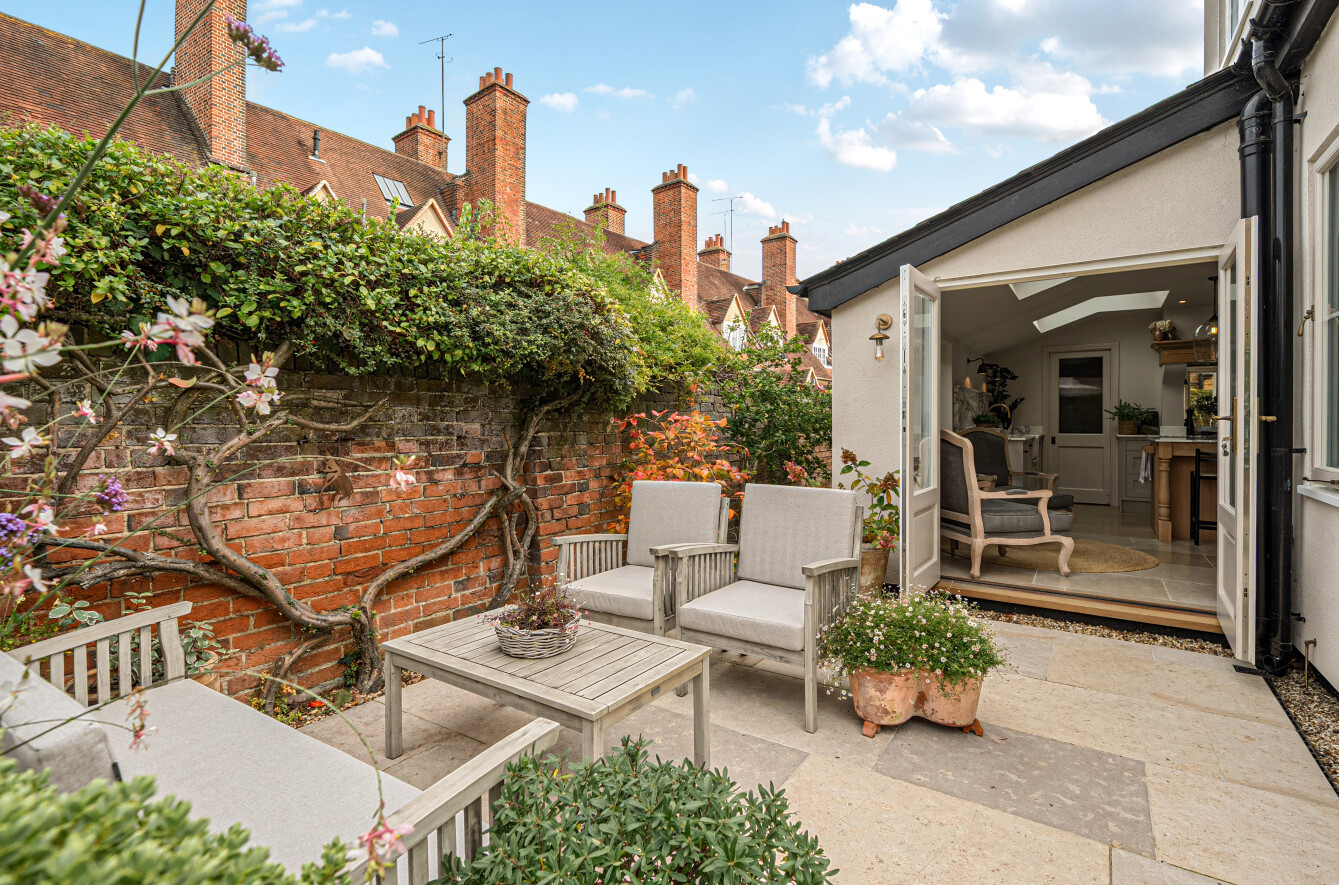 This beautifully reimagined four-bedroom period home on Millmead Terrace offers the perfect blend of historic charm and modern luxury, set in one of Guildford's most desirable central locations. Just moments from the River Wey and a short stroll from the High Street, the property provides an exceptional lifestyle with access to cultural amenities, independent shops, award-winning restaurants and excellent schools.The house has been completely rewired and re-plumbed, with no expense spared in its renovation. On the lower ground floor is a generous fourth bedroom with bay window, along with a practical utility room, shower facilities and a bespoke wine cabinet created by Boxhill Joinery. The ground floor is designed for both family living and entertaining, with a bright living room at the front of the house, a second reception with bespoke joinery, and an expansive kitchen and dining room to the rear that opens directly onto the garden.The kitchen has been crafted with Italian Arabescato marble worktops, a Perrin & Rowe sink with boiling water tap, bespoke cabinetry from Boxhill Joinery and elegant pendants and wall lighting by Jim Lawrence. Switches and sockets by Corston complete the detail, while limestone flooring from Quorn Stone flows seamlessly through to the landscaped garden, designed by Sally Hart, creating a wonderful sense of connection between inside and out. Between two discreet glazed doors are further practical spaces, both fitted with bespoke joinery: one serves as a walk-in pantry, while the other cleverly houses the boiler, water tank and a useful work station, combining function with considered design at the heart of the home.Upstairs, the first floor offers a beautifully proportioned principal bedroom with an en-suite shower room, together with two further double bedrooms and a stylish family bathroom. Across the house, the craftsmanship is evident, with bespoke joinery providing thoughtful storage solutions throughout.Externally, the garden has been designed for year-round enjoyment, offering both privacy and elegance. The property also benefits from access to a garage situated opposite in a nearby row, which is available to transfer to the purchaser at a cost of approximately £125 per month (subject to landlord agreement).