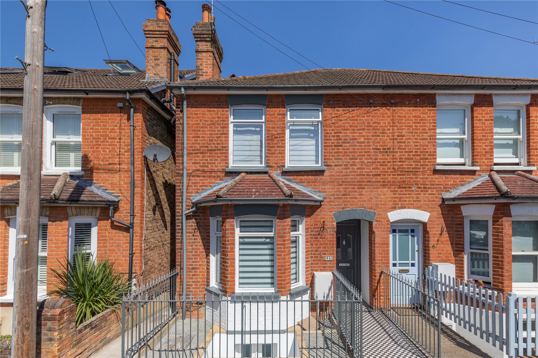 This attractive semi-detached period property offers beautifully presented and well-balanced accommodation arranged over three floors, combining character features with contemporary finishes. The home has been thoughtfully updated to create a stylish and comfortable living space while retaining the charm and architectural character associated with homes of this era.The ground floor accommodation comprises an inviting reception room positioned to the front of the property, featuring a bay window which allows natural light to fill the space and creates a warm and welcoming setting for everyday living. To the rear is a well-appointed kitchen fitted with a range of modern units and integrated appliances, offering generous workspace and room for dining. From here there is access to a useful utility area and a contemporary family bathroom.The basement level has been cleverly arranged to provide additional versatile living space. This floor currently offers a further reception room which could equally serve as a family room, media room or home office, along with a double bedroom. A modern shower room on this level enhances the practicality of the layout and makes the space ideal for guests, independent living, or flexible family use.The first floor comprises three well-proportioned bedrooms, including a particularly spacious principal bedroom spanning the width of the property and benefiting from excellent natural light. The remaining bedrooms provide comfortable accommodation for family members, guests or those requiring work-from-home space. A beautifully finished shower room serves this floor and is presented with contemporary fittings and stylish tiling.Externally, the property enjoys an attractive rear garden designed with entertaining in mind, featuring a generous decked terrace and a further landscaped seating area beyond. The garden provides an excellent space for outdoor dining, relaxation and social gatherings. To the front of the property there is a small enclosed garden, and residents benefit from permit parking available on the road.The property is ideally situated on a popular residential road in Guildford, well known for its characterful period homes and convenient access to the town centre. Guildford offers an excellent selection of shops, restaurants and leisure facilities, together with a mainline railway station providing fast and frequent services to London Waterloo. The area is also particularly well regarded for its outstanding range of schools, including highly rated primary and secondary options in both the state and private sectors. The surrounding countryside, including the Surrey Hills Area of Outstanding Natural Beauty, offers extensive walking, cycling and outdoor pursuits, making this an ideal location for those seeking both town convenience and access to green open space.