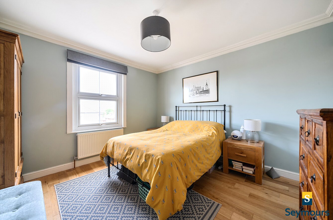 Ascending to the first floor, you'll find two double bedrooms that continue the home's theme of thoughtful renovation. The principal bedroom, positioned at the front of the house, offers a serene retreat with ample natural light, creating a bright and airy atmosphere. The second bedroom is situated at the rear, overlooking the garden.