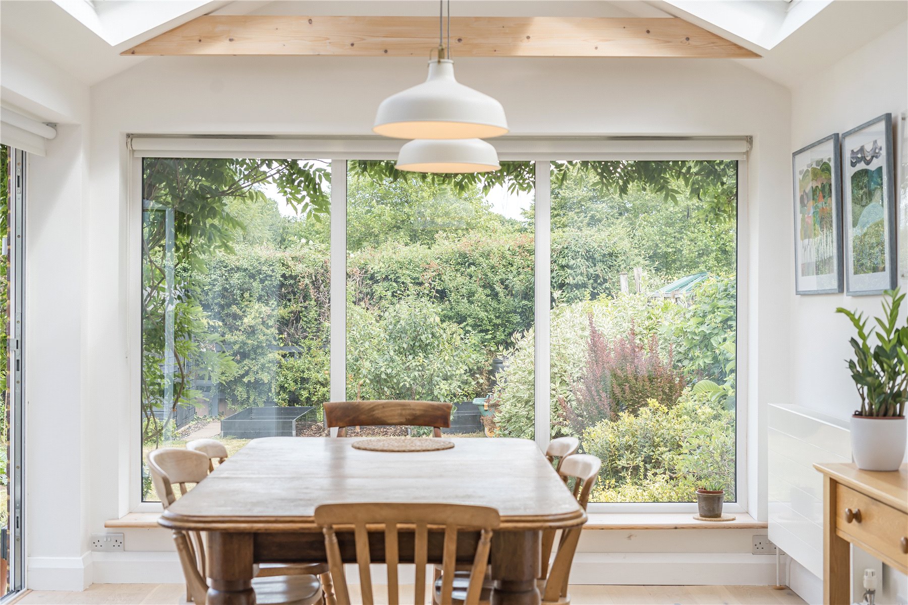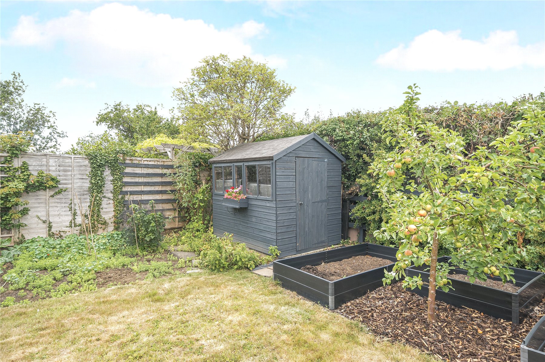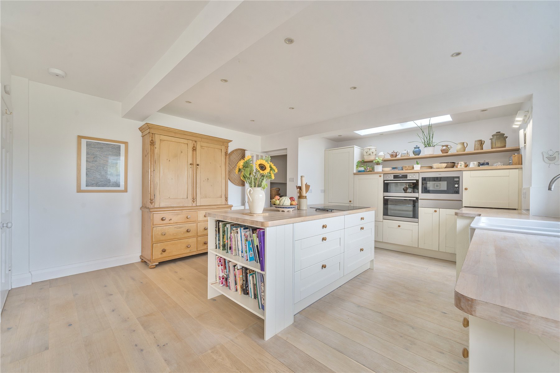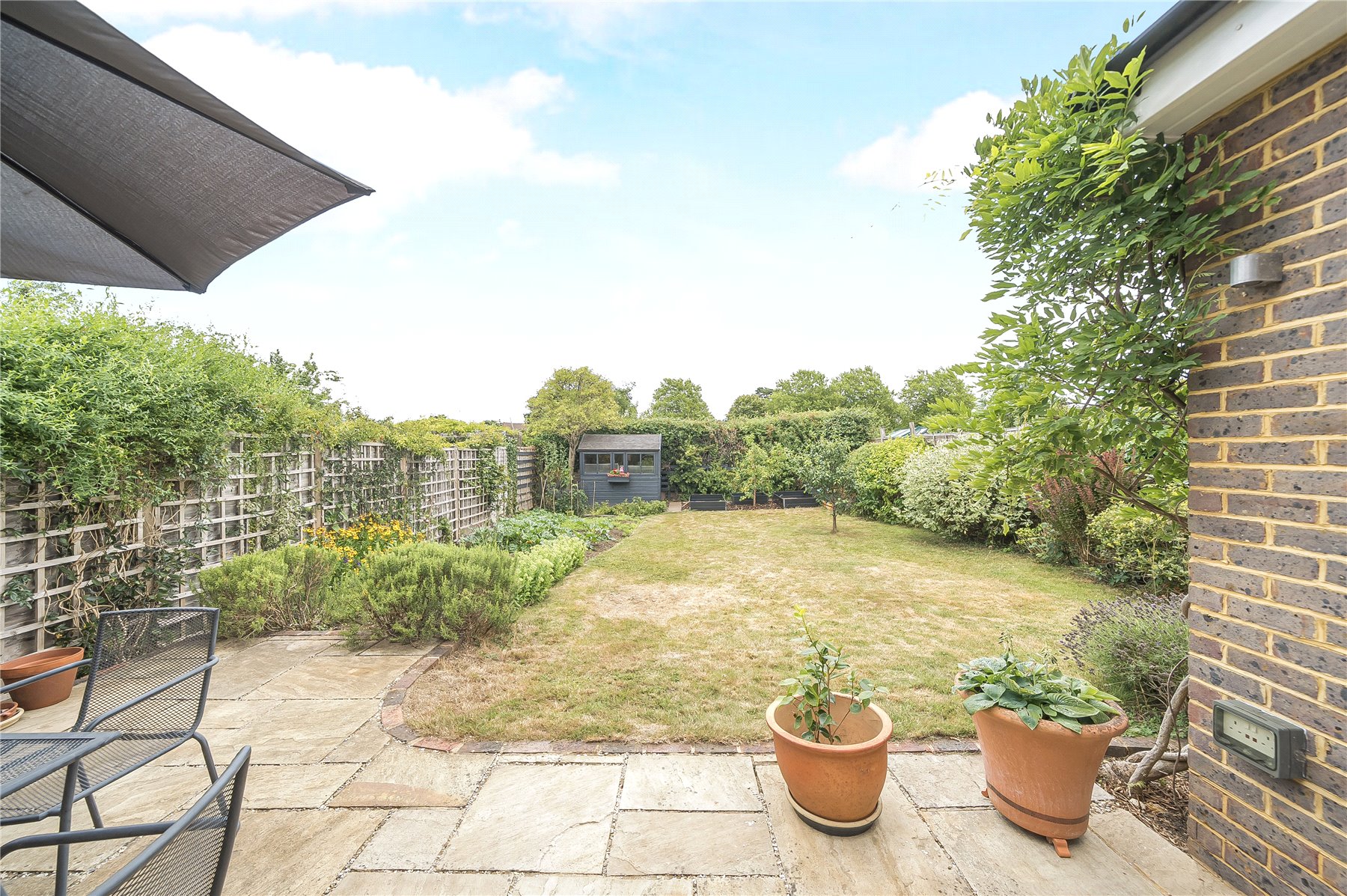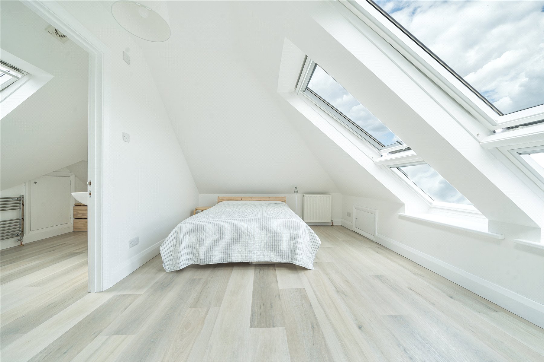 The ground floor features a welcoming entrance hallway leading into a generously sized living room with a bay window and log burner, providing a cosy yet refined space for relaxation. To the rear, the extended kitchen and dining area is a real showstopper, with skylights and bifold doors flooding the space with natural light and seamlessly connecting the indoors with the patio and garden beyond. The kitchen is thoughtfully fitted with high-end appliances and ample cabinetry, centred around a stylish island with open shelving.Upstairs, the first floor offers four beautifully finished bedrooms, each with a bright and airy feel. A contemporary family bathroom and a separate modern shower room ensure comfort and practicality for everyday family life. The second floor, formed through a loft conversion, provides a further spacious bedroom complete with its own en suite shower room and generous eaves storage, ideal as a guest suite, teen retreat, or versatile additional space. Every bathroom throughout the home is immaculately presented, with sleek white tiling and quality fittings that enhance the clean and sophisticated style.Externally, the property is equally appealing, with a charming red-brick facade, off-street parking, and an integral garage. The rear garden is a standout feature, landscaped for ease of maintenance with established borders, raised beds, and both lawn and patio areas ideal for outdoor entertaining. Backing onto the green, the setting offers a tranquil outlook while remaining conveniently close to Guildford's extensive amenities, excellent schooling, and transport links.