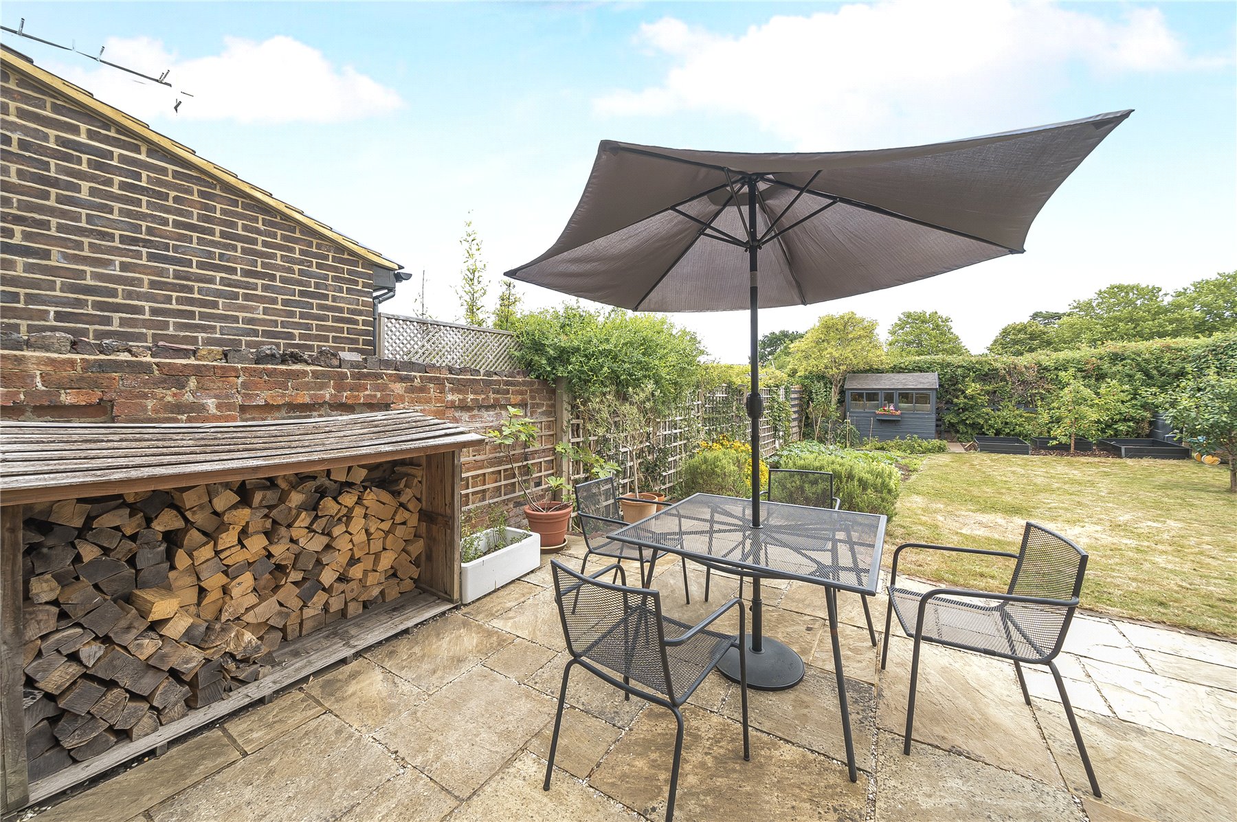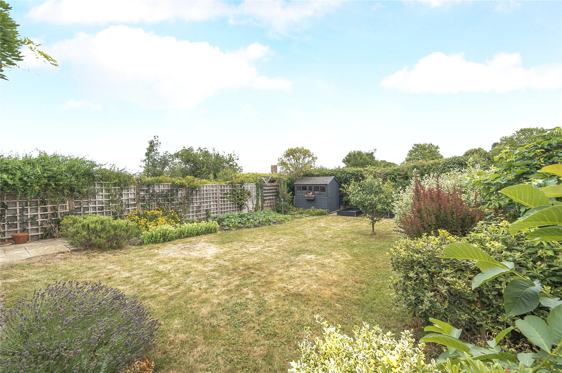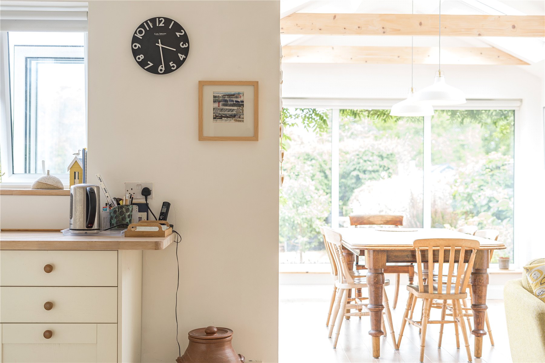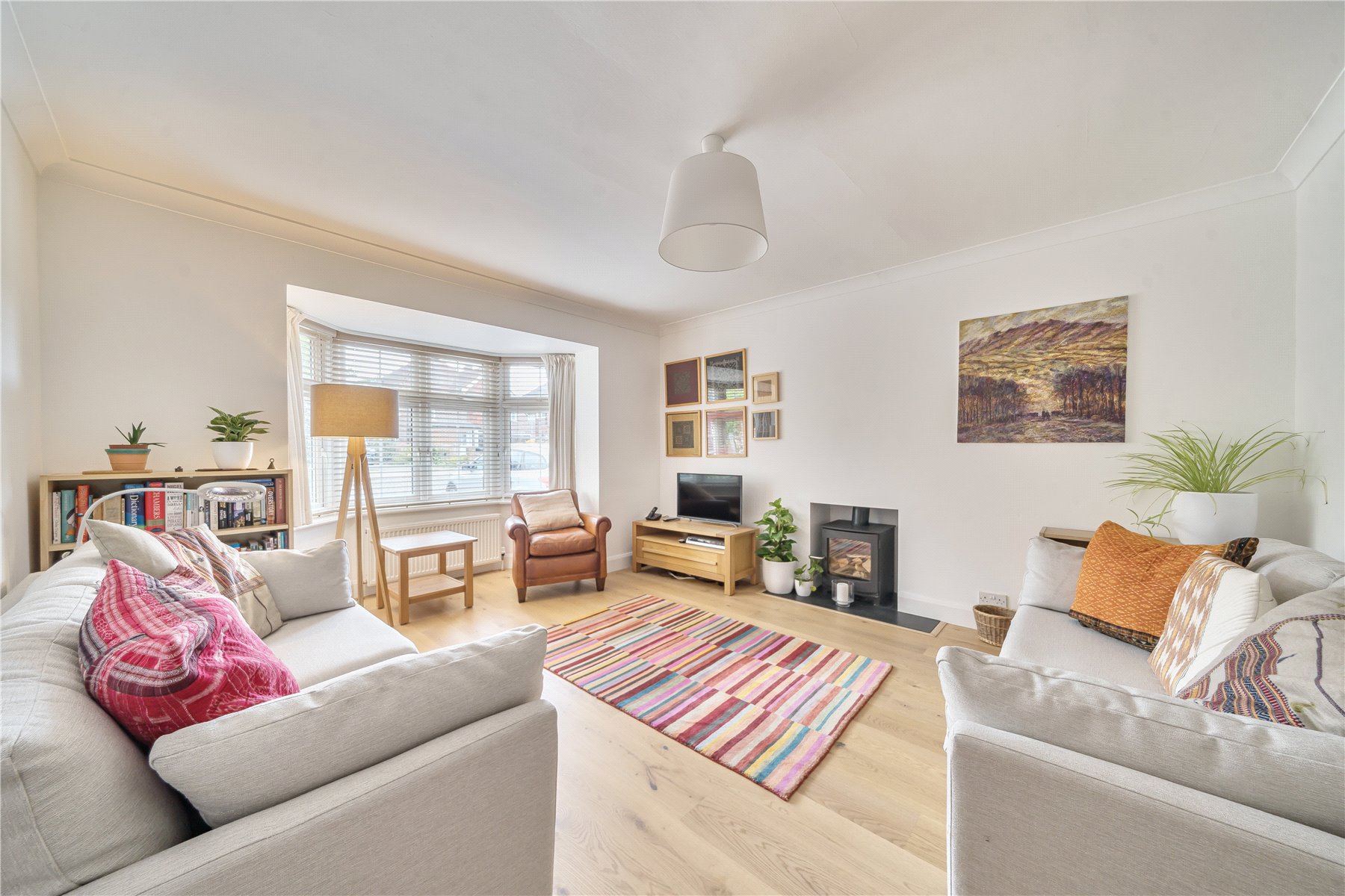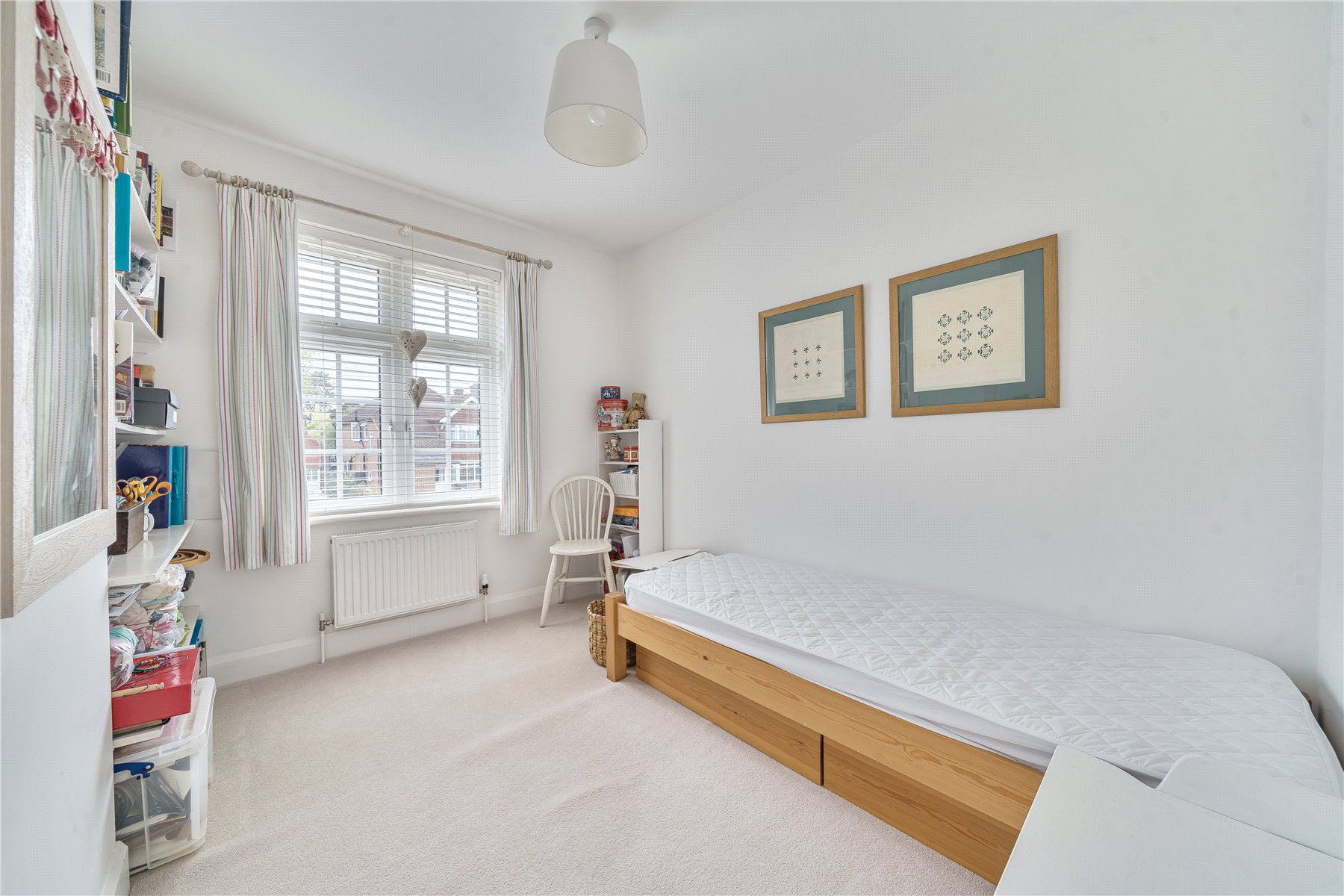The ground floor features a welcoming entrance hallway leading into a generously sized living room with a bay window and log burner, providing a cosy yet refined space for relaxation. To the rear, the extended kitchen and dining area is a real showstopper, with skylights and bifold doors flooding the space with natural light and seamlessly connecting the indoors with the patio and garden beyond. The kitchen is thoughtfully fitted with high-end appliances and ample cabinetry, centred around a stylish island with open shelving.Upstairs, the first floor offers four beautifully finished bedrooms, each with a bright and airy feel. A contemporary family bathroom and a separate modern shower room ensure comfort and practicality for everyday family life. The second floor, formed through a loft conversion, provides a further spacious bedroom complete with its own en suite shower room and generous eaves storage, ideal as a guest suite, teen retreat, or versatile additional space. Every bathroom throughout the home is immaculately presented, with sleek white tiling and quality fittings that enhance the clean and sophisticated style.Externally, the property is equally appealing, with a charming red-brick facade, off-street parking, and an integral garage. The rear garden is a standout feature, landscaped for ease of maintenance with established borders, raised beds, and both lawn and patio areas ideal for outdoor entertaining. Backing onto the green, the setting offers a tranquil outlook while remaining conveniently close to Guildford's extensive amenities, excellent schooling, and transport links.