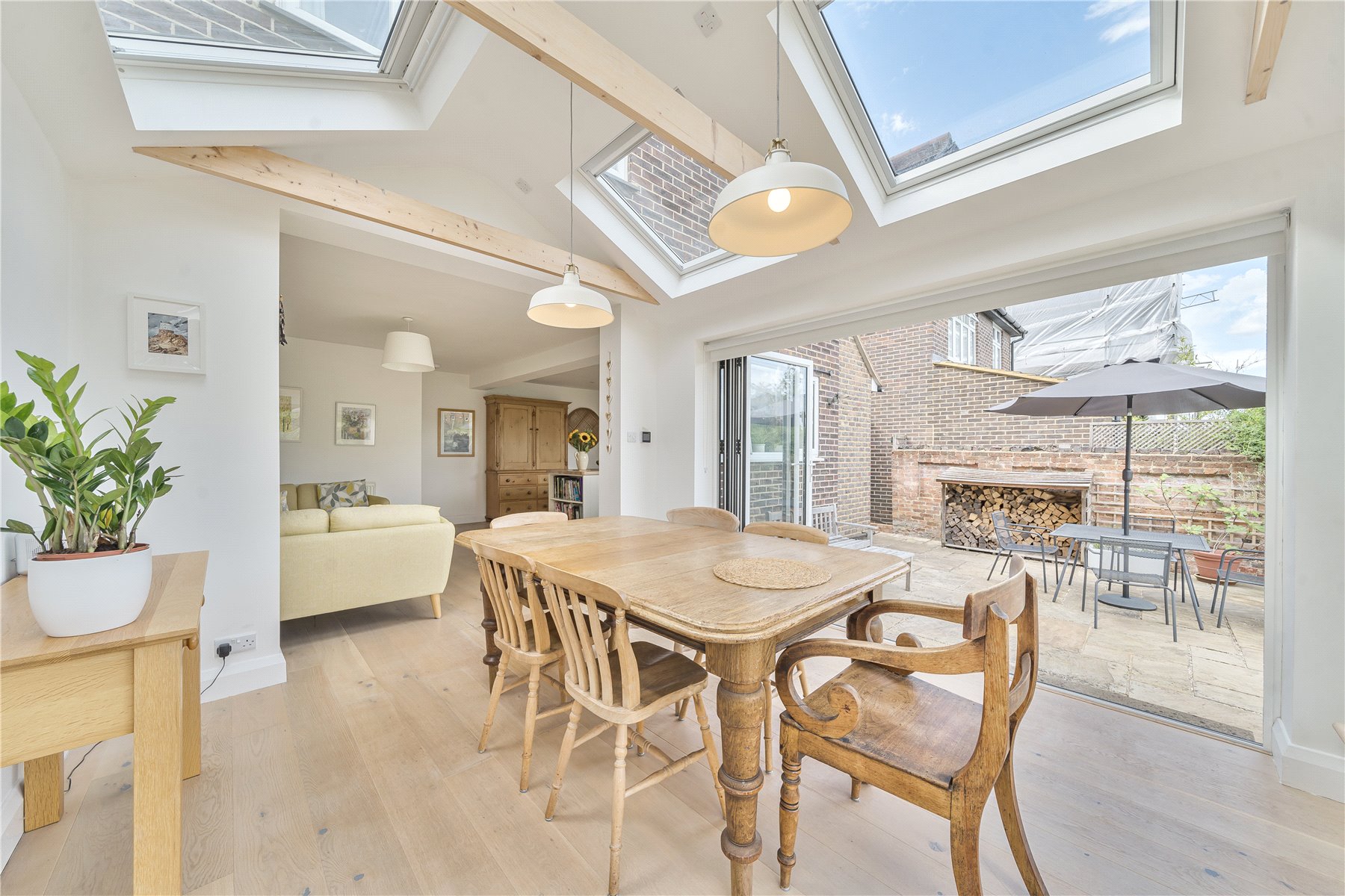 Situated in the heart of Onslow Village, the property is within walking distance of reputable local schools and the mainline train station. This superbly presented five-bedroom family home blends classic character with elegant modern design, offering bright, spacious interiors across three floors. The property has been thoughtfully extended by the current owners to maximise space and light, including a striking single-storey rear extension and a well-executed loft conversion.