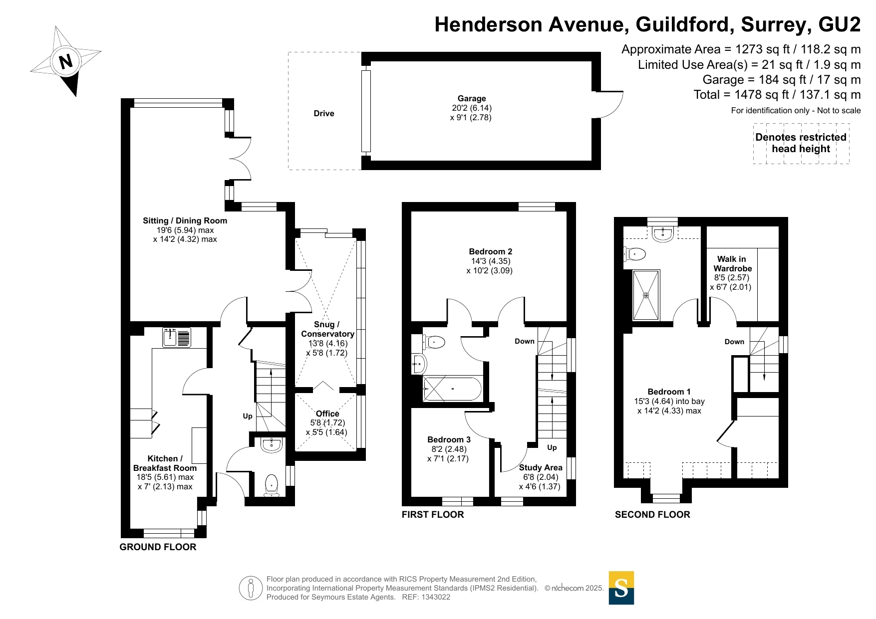 Upstairs, the first floor provides two well-proportioned bedrooms, served by a modern family bathroom finished in a contemporary style. This level also benefits from a dedicated study area, ideal for those needing additional workspace or a reading nook.