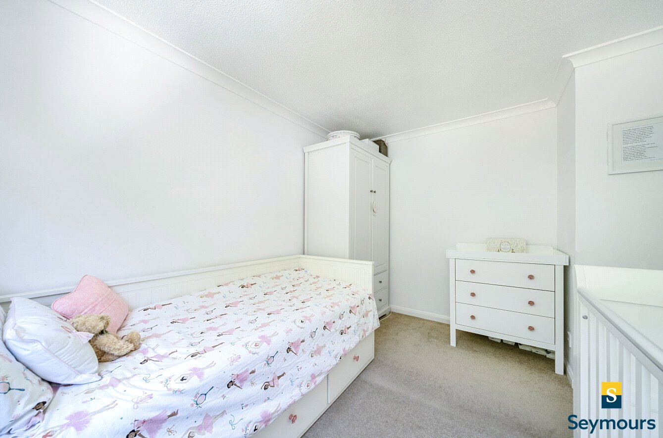 Upstairs, the home offers three bedrooms, including a generous main bedroom and a second double, both flooded with natural light. The third bedroom is ideal as a nursery or study, and all are served by a stylish family bathroom fitted with contemporary white suite and shower over the bath. A converted loft space adds further flexibility for storage or home office.