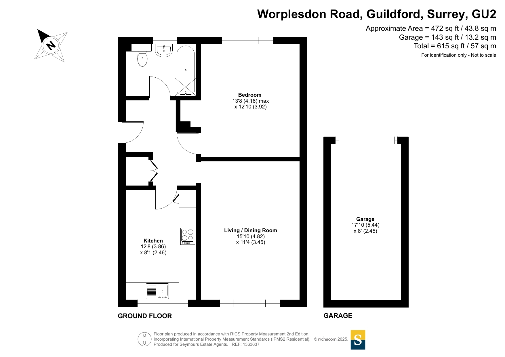 Perfectly positioned within easy reach of local shops and amenities, and just around 1.5 miles from Guildford town centre, this spacious and beautifully presented one-bedroom ground floor apartment offers convenience, comfort, and excellent value all with no onward chain.Accessed via a secure phone entry system, the apartment opens into a generous entrance hall, providing a lovely sense of space and flow throughout. The well-equipped kitchen features an attractive range of eye and base level units complemented by stylish work surfaces, while the bright and airy living room enjoys plenty of natural light an inviting space to relax or entertain.The bedroom is a great size, comfortably accommodating a king-size bed and additional furniture, and the modern bathroom is fitted with a three-piece suite comprising a WC, wash hand basin, and bath with shower over.Outside, residents benefit from well-maintained communal gardens, allocated parking, and a private garage within a communal block providing both practicality and peace of mind.Additional Information:Lease remaining: 85 yearsService charge: £1,665 per annumGround rent: £150 per annumNo onward chain