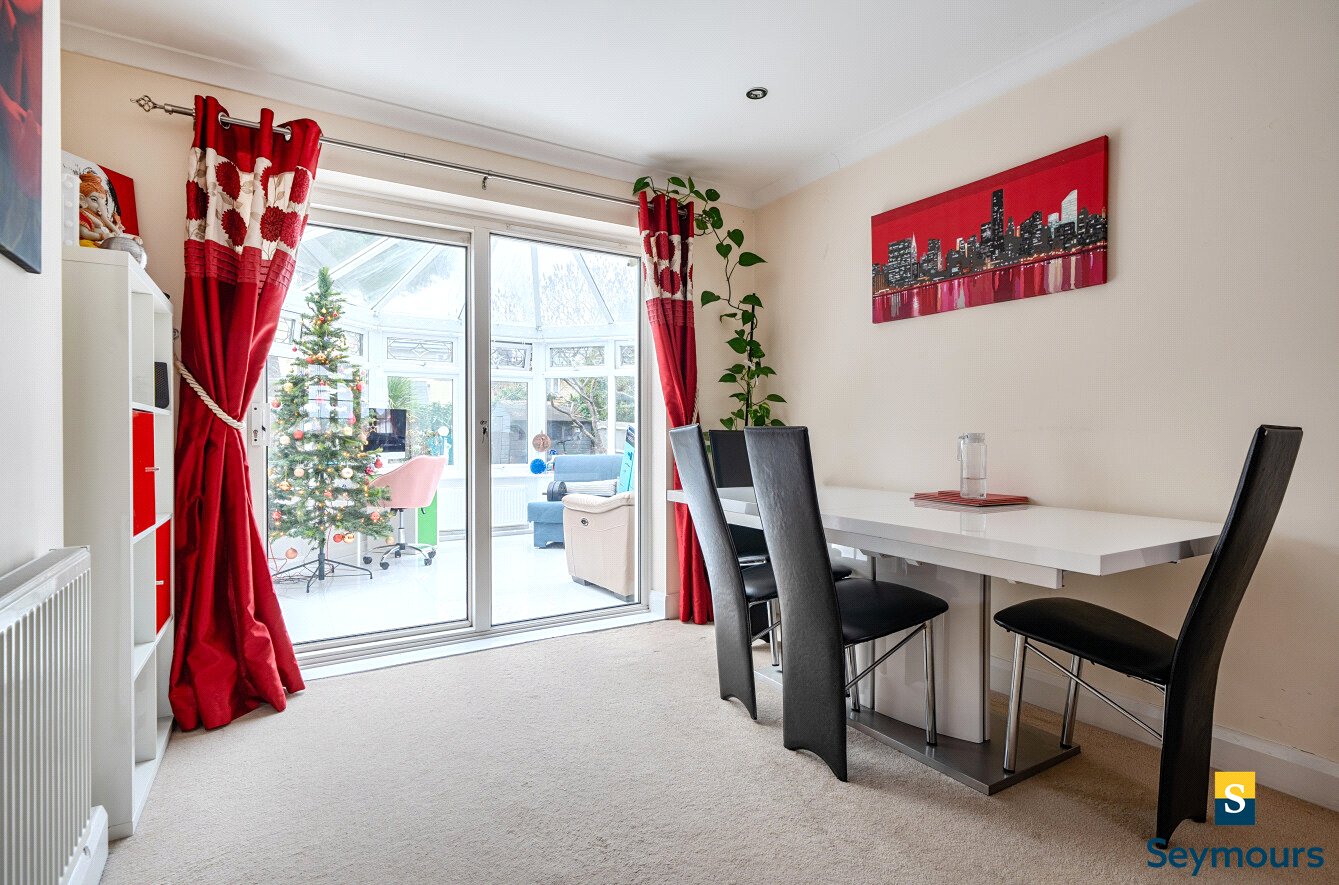 The heart of the home is the double aspect living and dining room, which feels bright and inviting with a natural sense of openness. Large windows and glazed doors allow light to pour in, creating a pleasant connection between the main living space and the rear of the property. This area comfortably accommodates both relaxation and entertaining, with distinct zones that work equally well for family gatherings or quieter evenings. The overall feel is warm and homely, enhanced by tasteful finishes and a layout that encourages easy movement throughout.