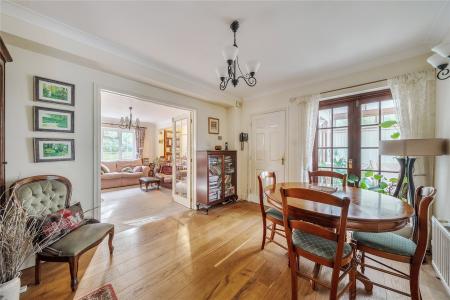 Step inside to a welcoming entrance hall, setting the tone for the character and light that flow throughout. The spacious living room, with its log-burning fireplace and generous windows, offers the perfect place to unwind, while double doors open to the dining room, creating a wonderful sense of flow for entertaining.