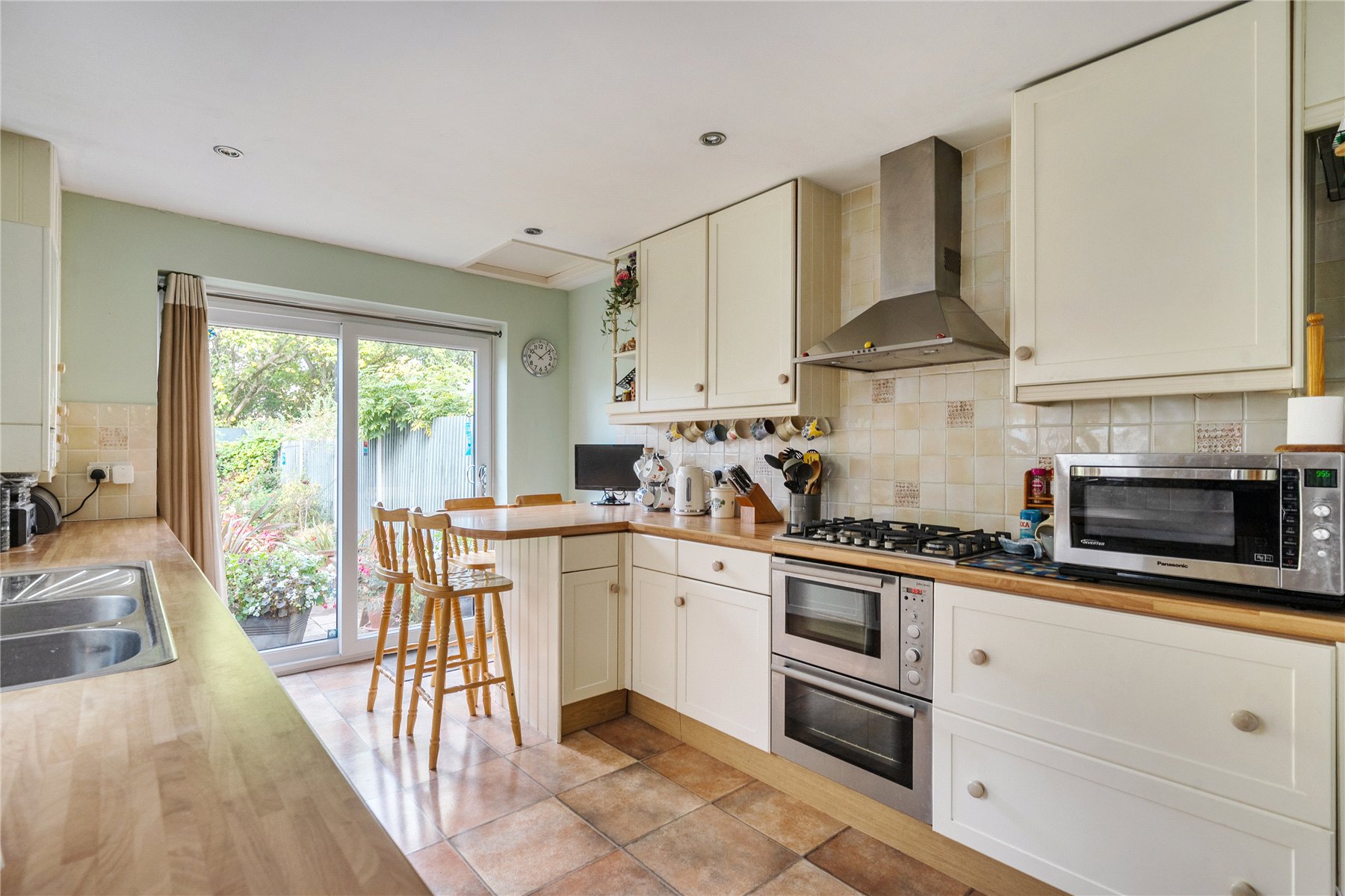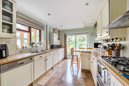 The country-style kitchen provides ample eye and base level storage and workspace, blending charm and practicality, and sliding patio doors lead out in the private rear garden. The kitchen sits neatly next to the conservatory. Naturally, you could make this area open plan, subject to the usual building controls.