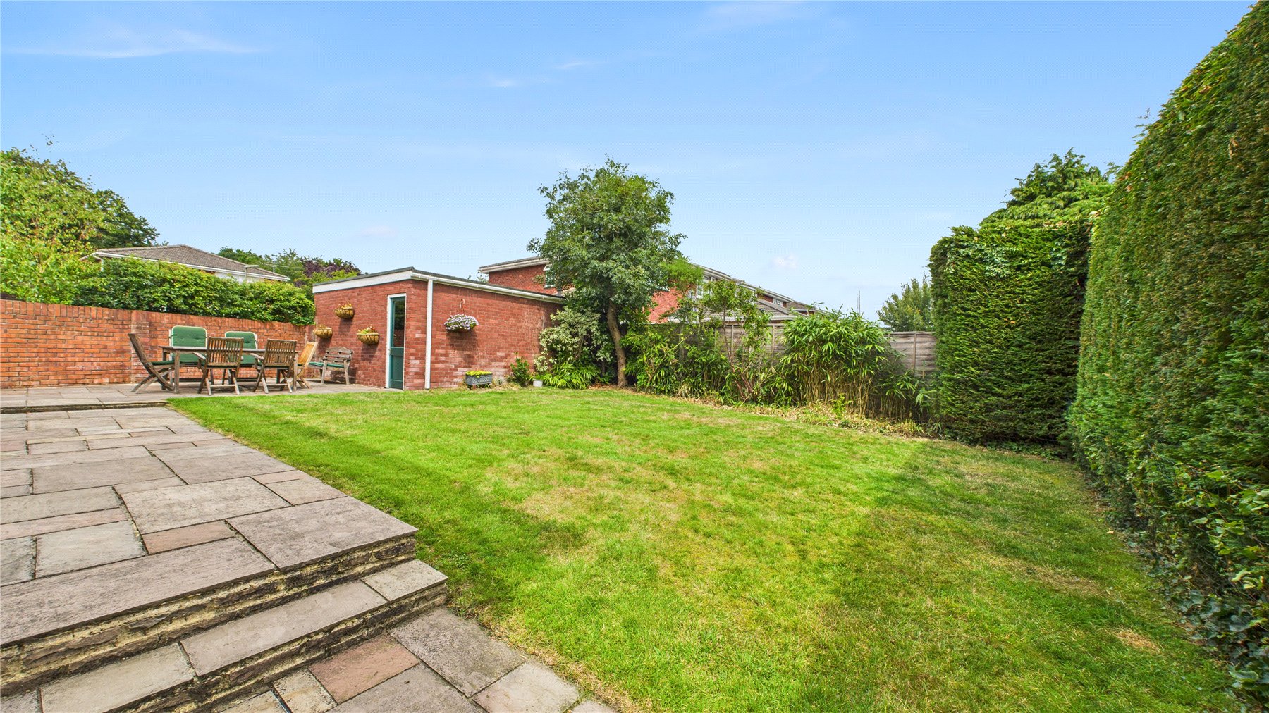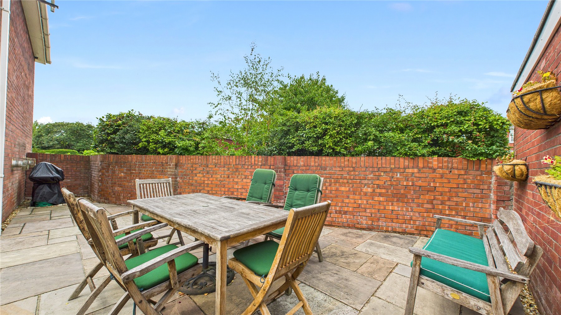 Outside, the enclosed rear garden is primarily laid to lawn, complemented by a private patio area.