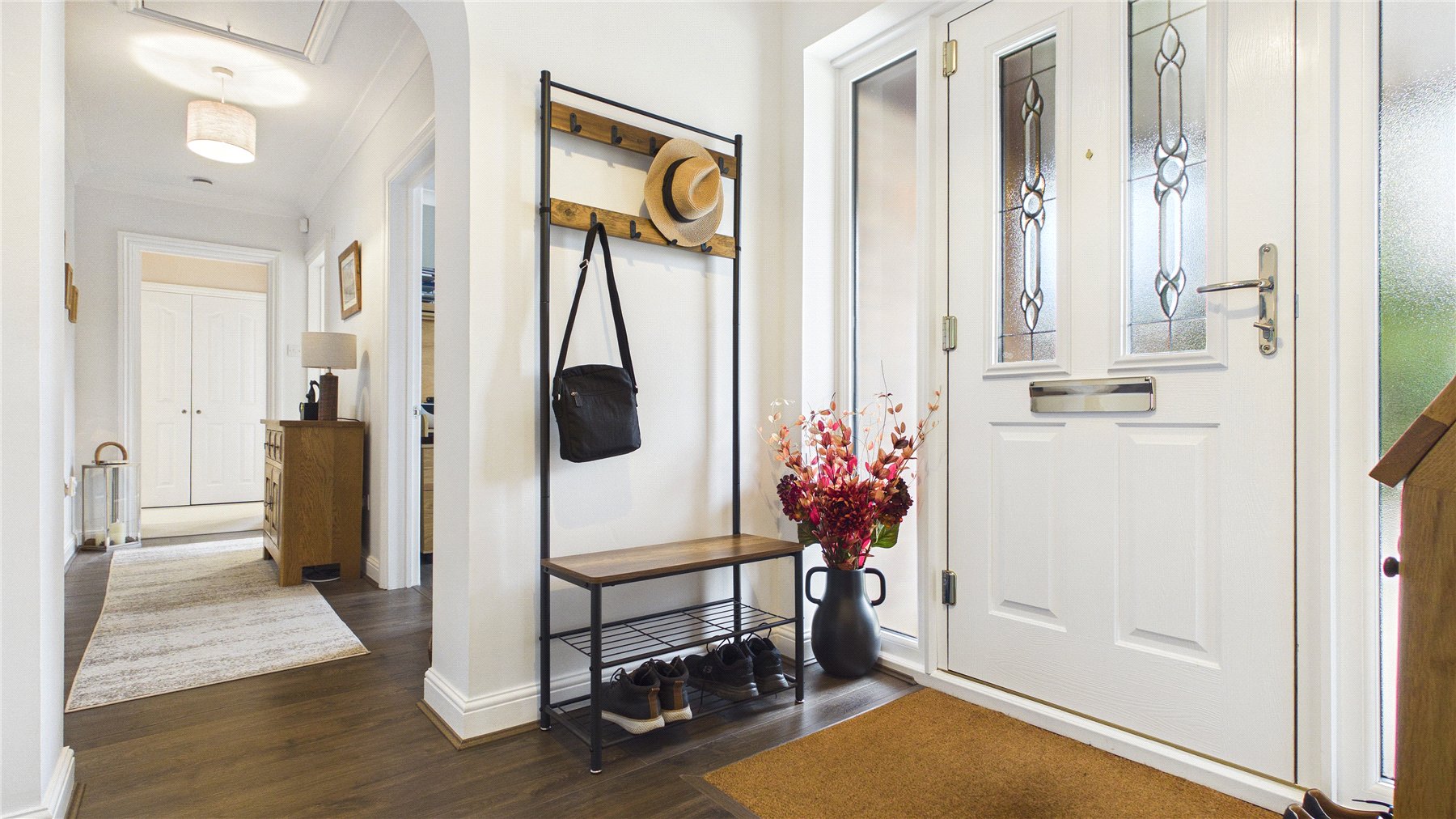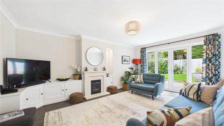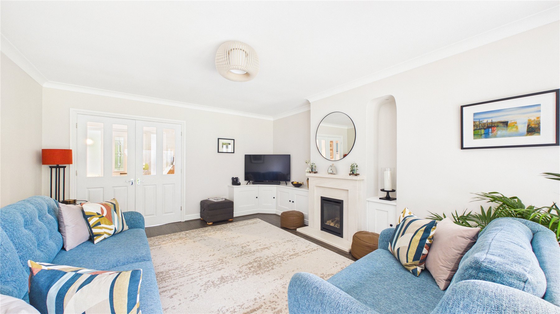 Set on a generous but manageable plot, you step inside via the covered entrance to a welcoming entrance hallway. Double doors lead to the generous sitting room that is centred around the fireplace and features quality built in storage with side lighting. Patio doors also open onto the garden.