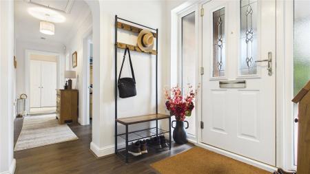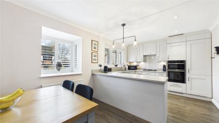 The kitchen breakfast room features a range of eye and base level Shaker Style units and is complemented by quality integrated appliances and square edge worktops. There is ample space for a good sized dining table and the benefit of a separate utility room with side access.