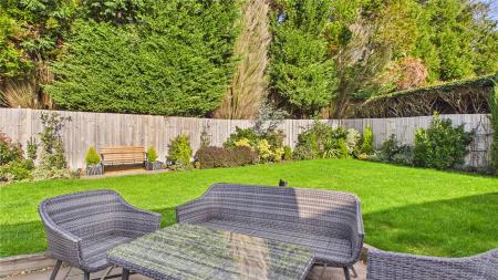 The rear garden is equally impressive. Enough space to enjoy in the summer months without becoming a chore. The Indian Sandstone patio enjoys sun throughout the summer months, whilst there are ample borders for planting and a handy area located behind the detached double garage for potting and storage.
