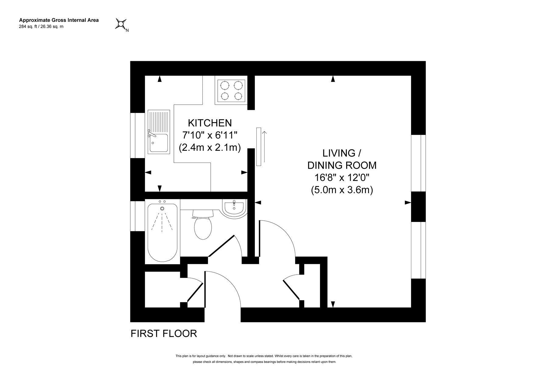 The accommodation comprises a bright and airy studio living space, a fitted kitchen and a bathroom. Further benefits include a long lease, allocated parking space and communal grounds.