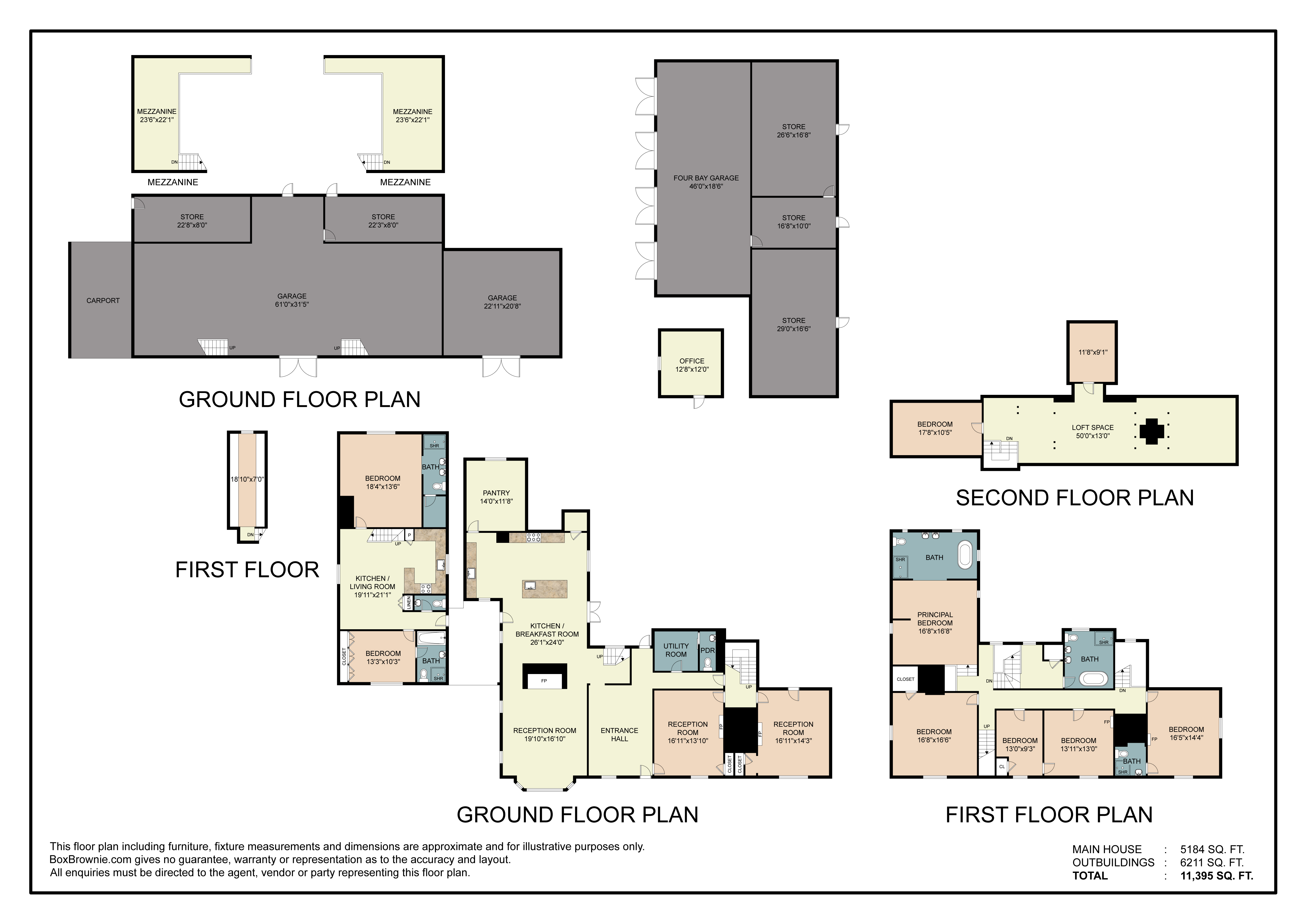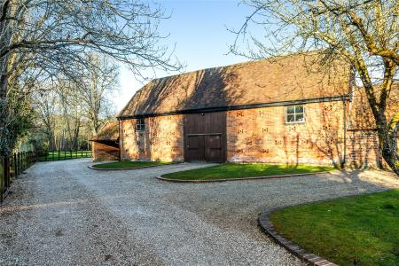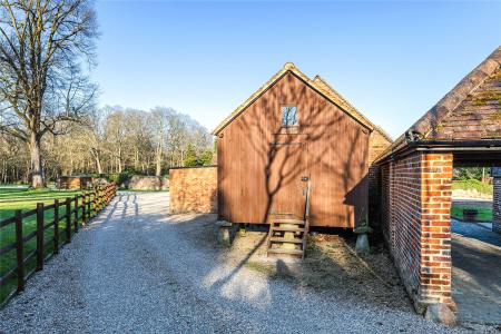 Accessed via a gated driveway, the detached Grade II listed barn with its duo of mezzanines is currently used as secure storage for eight vehicles and there is further parking in a four bay garage that sits adjoining a workshop and store rooms. Together the barn and outbuildings produce a wealth of scope to be converted into additional living accommodation (STPP).