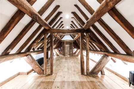 Up above, a stunning loft room with a further beamed vaulted ceiling generates a host of possibilities.