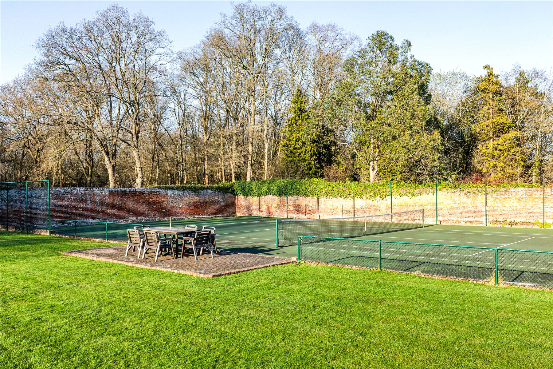 The tranquillity continues to the rear of the house where a secluded terrace connects with the entrance hall and kitchen/dining room creating a heavenly sanctuary for al fresco dining. A tennis court, further large lawn and formal landscaping combine to give you every excuse to spend time in the sunshine.