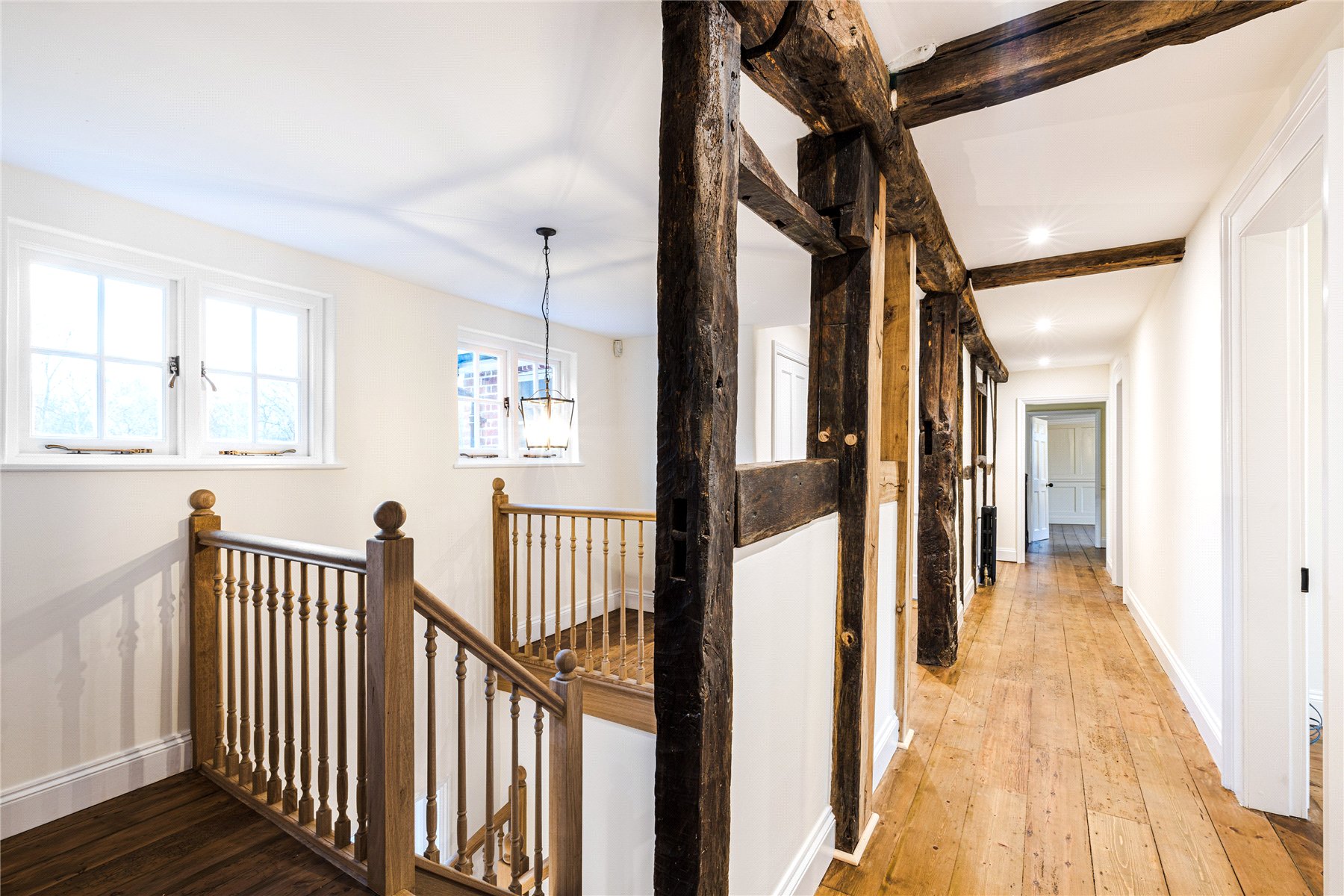 Set within grounds of over 5.5 acres, the main Grade II* listed house beautifully blends classical elegance with contemporary detailing. Behind the subtle grandeur of a handsome red brick facade an immaculate three storey layout unfolds over 5,184sq ft with an abundance of exposed beams, wall panelling and fireplaces. Engendering the grace and elegance of bygone eras this bounty of original features sits in harmony with the aesthetics of tastefully luxurious detailing.