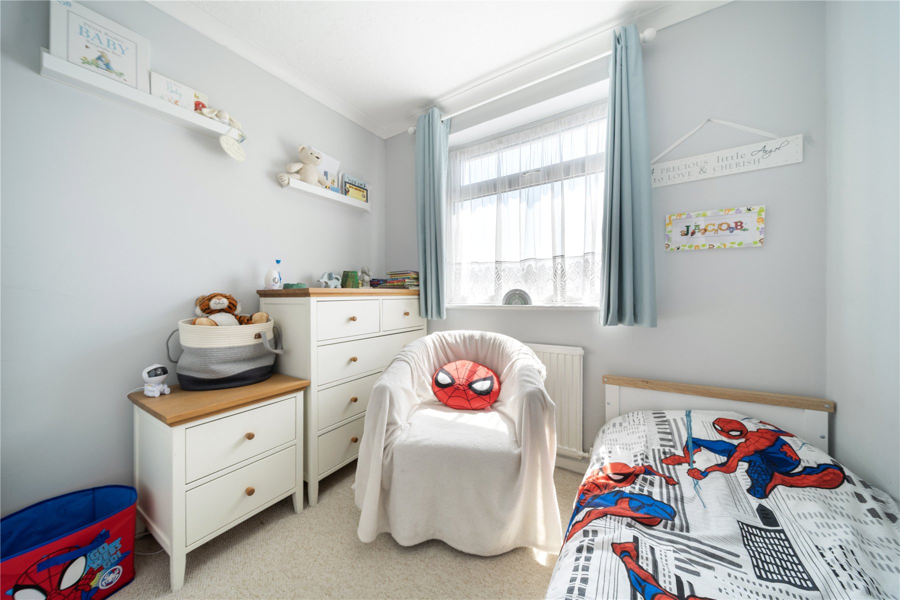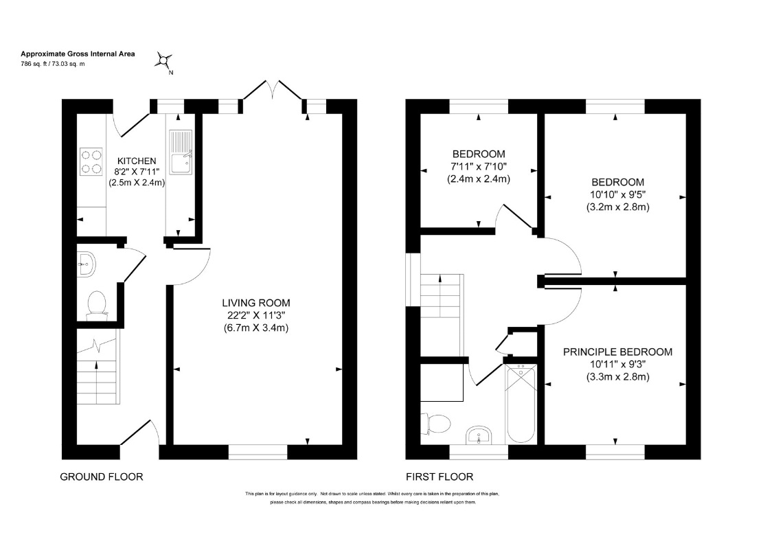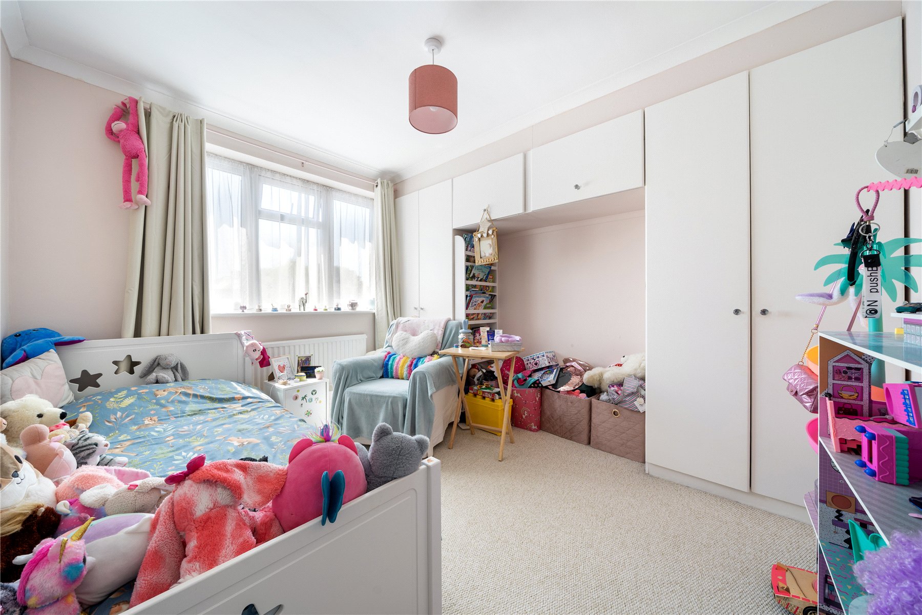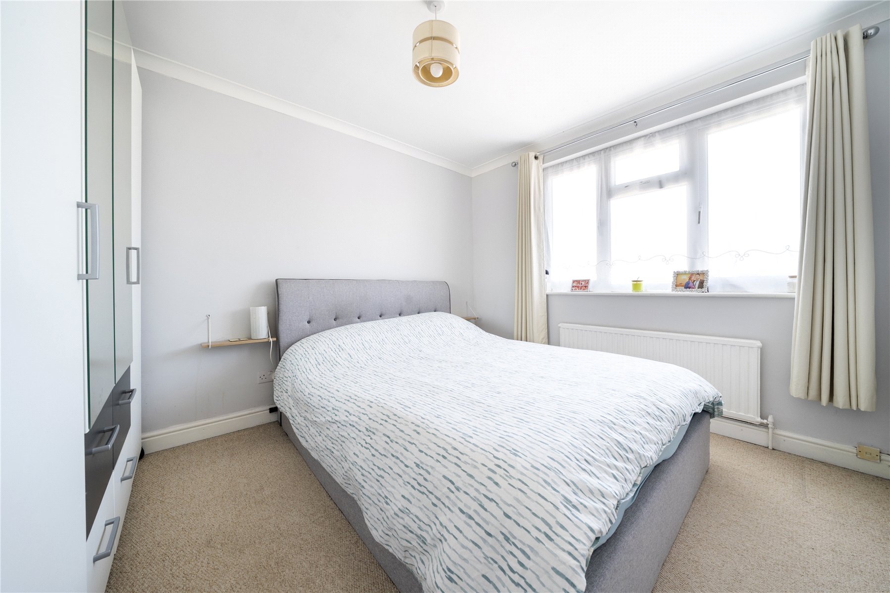 The property is offered to the market in excellent condition, having been well maintained by the current owners. The ground floor accommodation includes a bright and airy front-to-back lounge with double doors that open onto the garden, allowing for plenty of natural light. To the rear is a stylish kitchen, fitted with a range of high-gloss base and eye-level units, an integrated oven, and a four-ring gas hob. A downstairs cloakroom completes the ground floor.