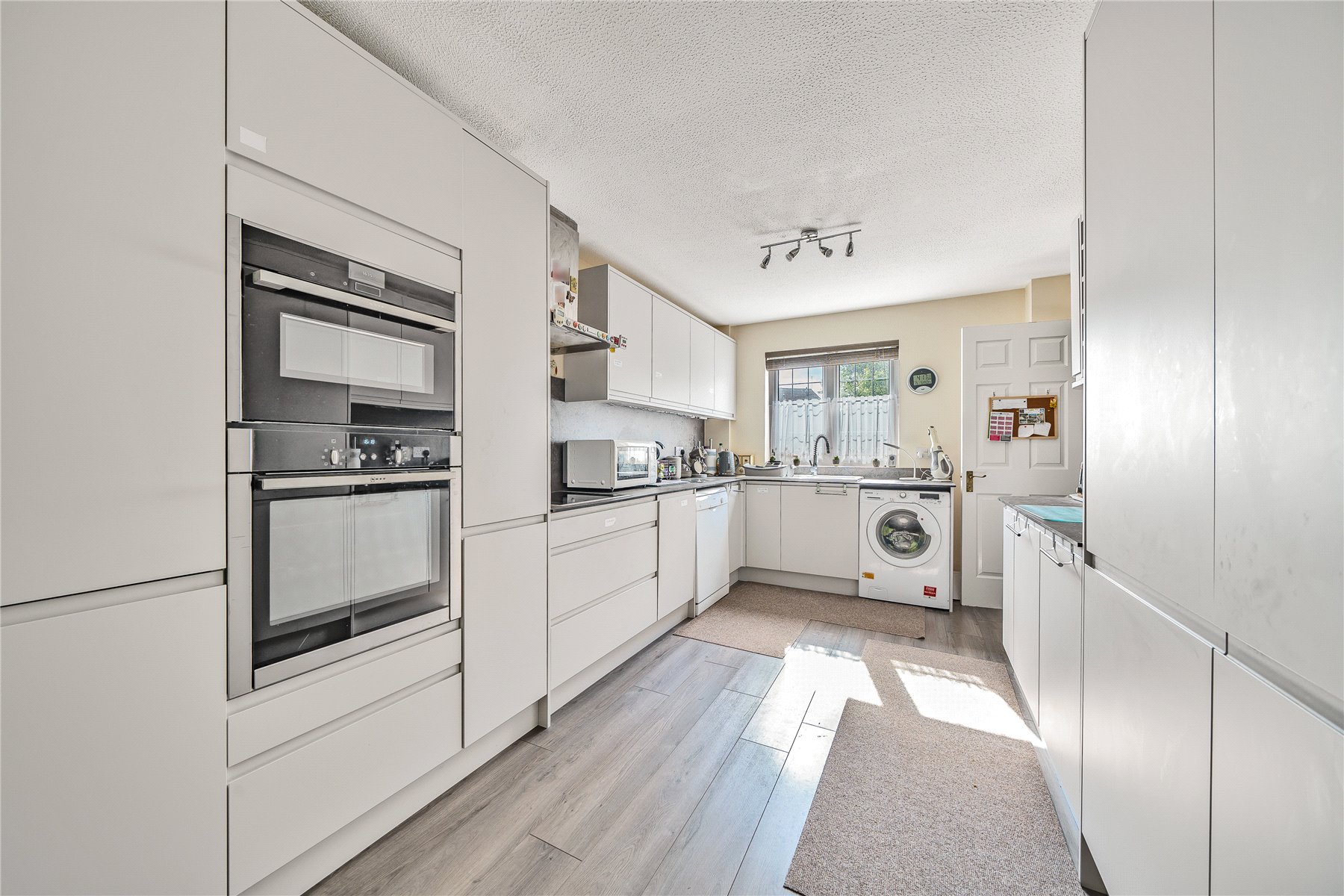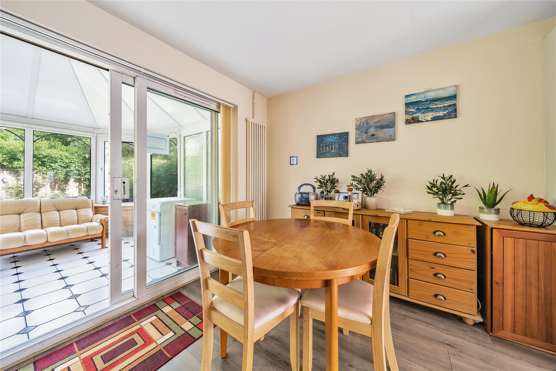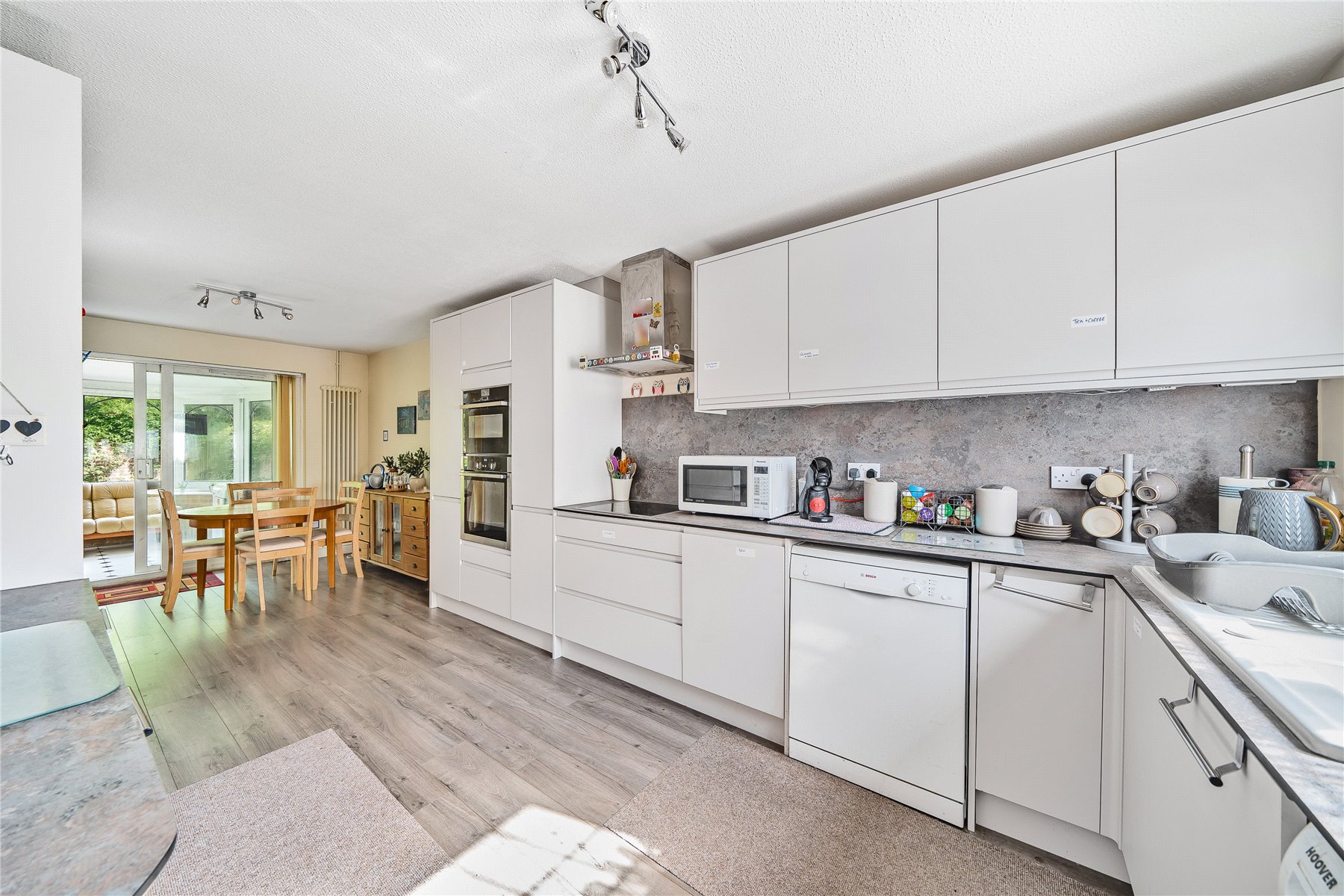 At the heart of the home is the beautifully refurbished kitchen/dining room, which spans from front to rear. Finished to a high standard, the kitchen features Quartz worktops, a full range of integrated appliances, and ample base and eye-level units. Toward the rear, there is space for a dining table, with direct access to the conservatory and views over the rear garden.