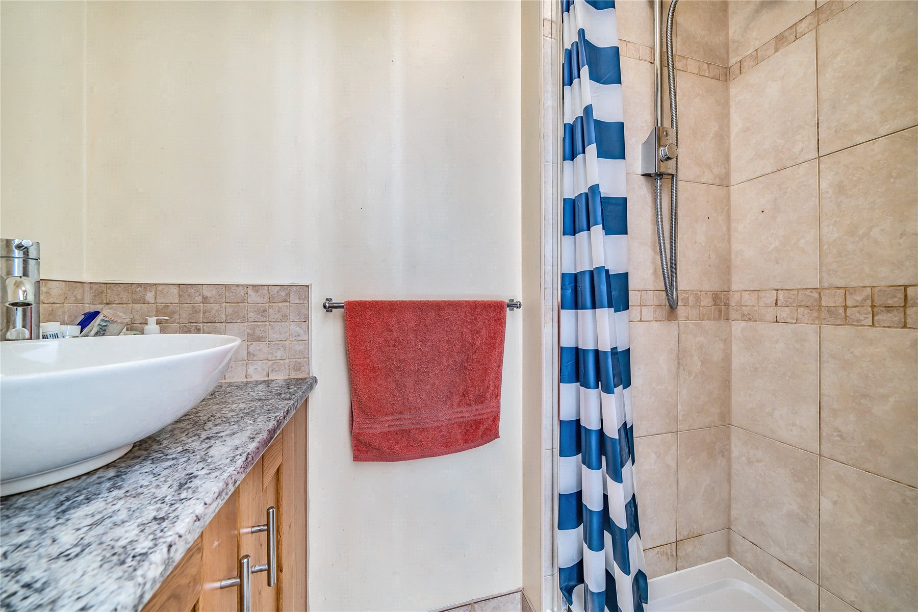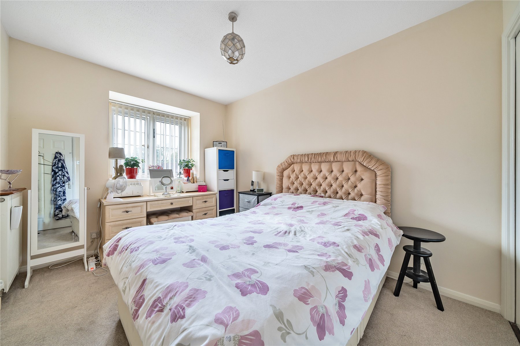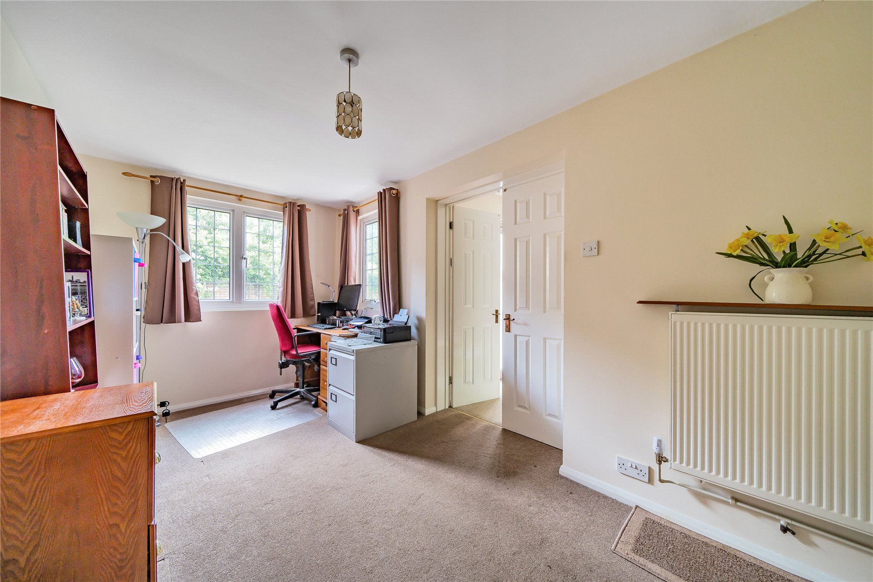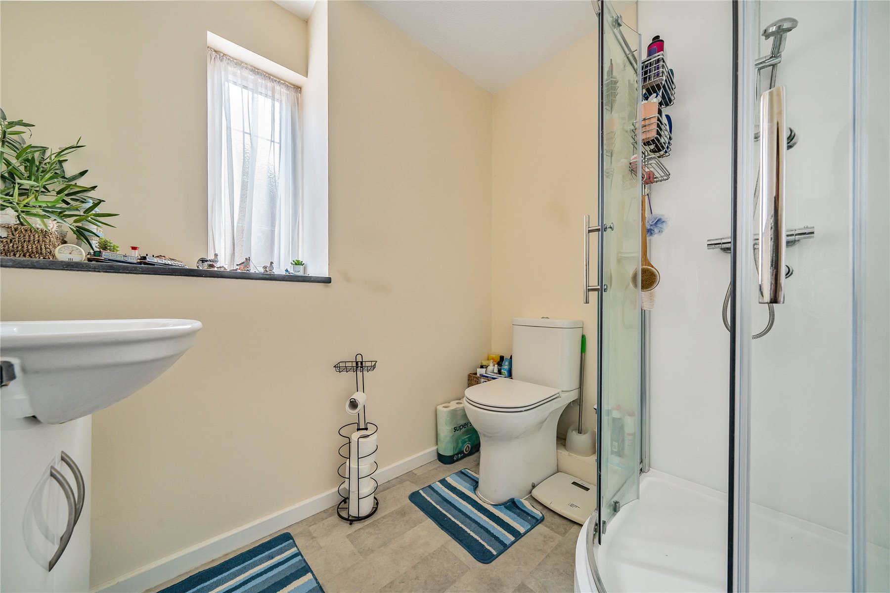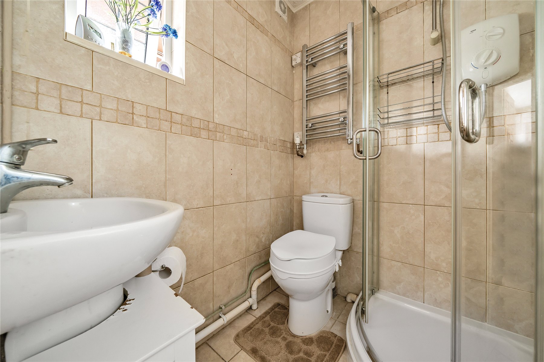 Upstairs, there are four well-proportioned bedrooms, including a master bedroom with en-suite shower room and built-in wardrobes. The family bathroom is bright and neatly presented, benefitting from a side window for natural light.
