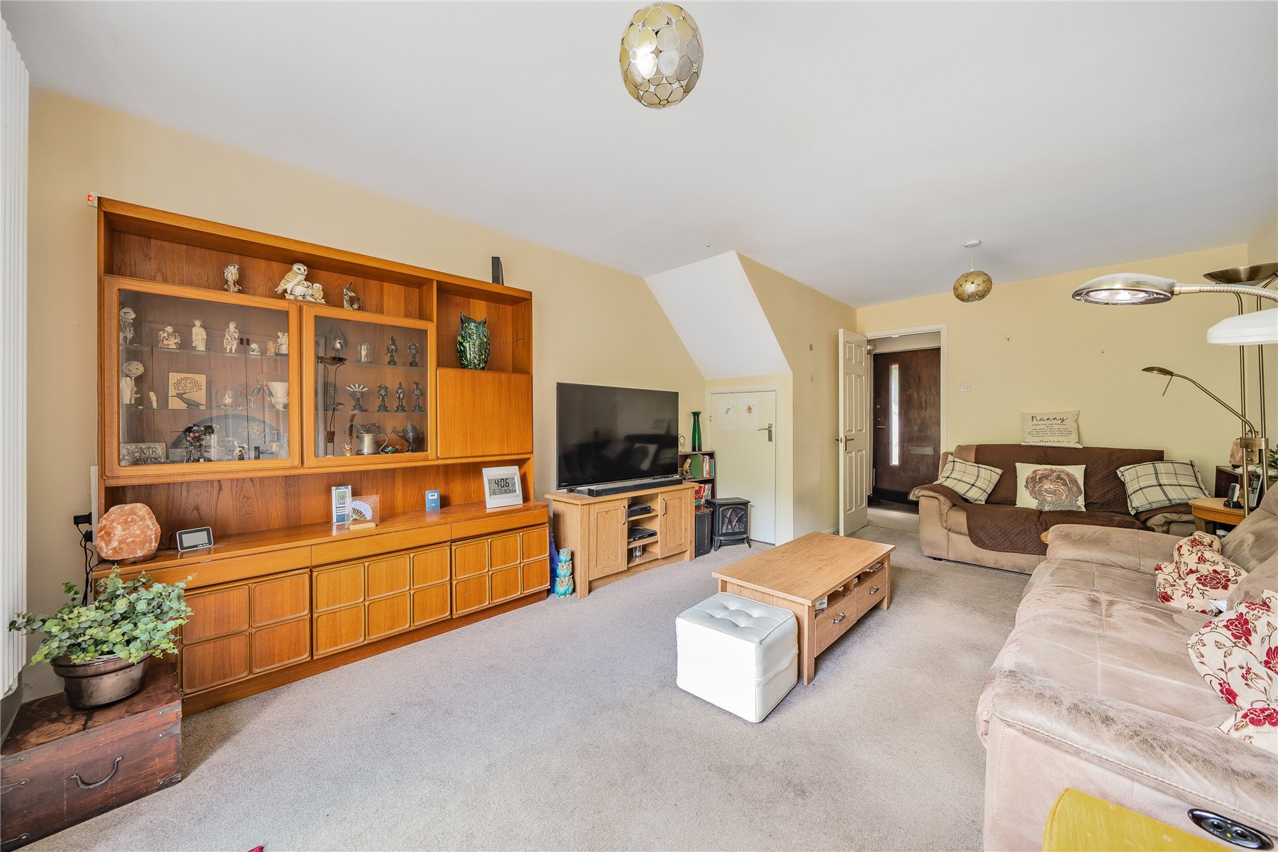 The spacious lounge also enjoys views of the garden and is presented in excellent order. From here, a door leads to a generous study areaa thoughtful conversion of part of the original double-length garage, offering flexible use for work or hobbies. A welcoming entrance hall and a downstairs cloakroom complete the ground floor.