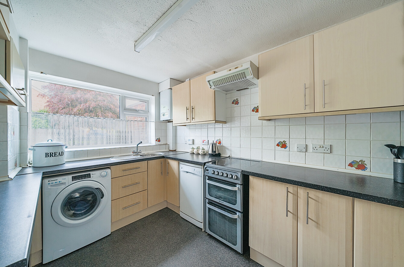 Step inside to discover a spacious interior, including a front-aspect kitchen, a large living room filled with natural light, and four well-proportioned bedrooms offering flexibility for family life, guests, or a home office.