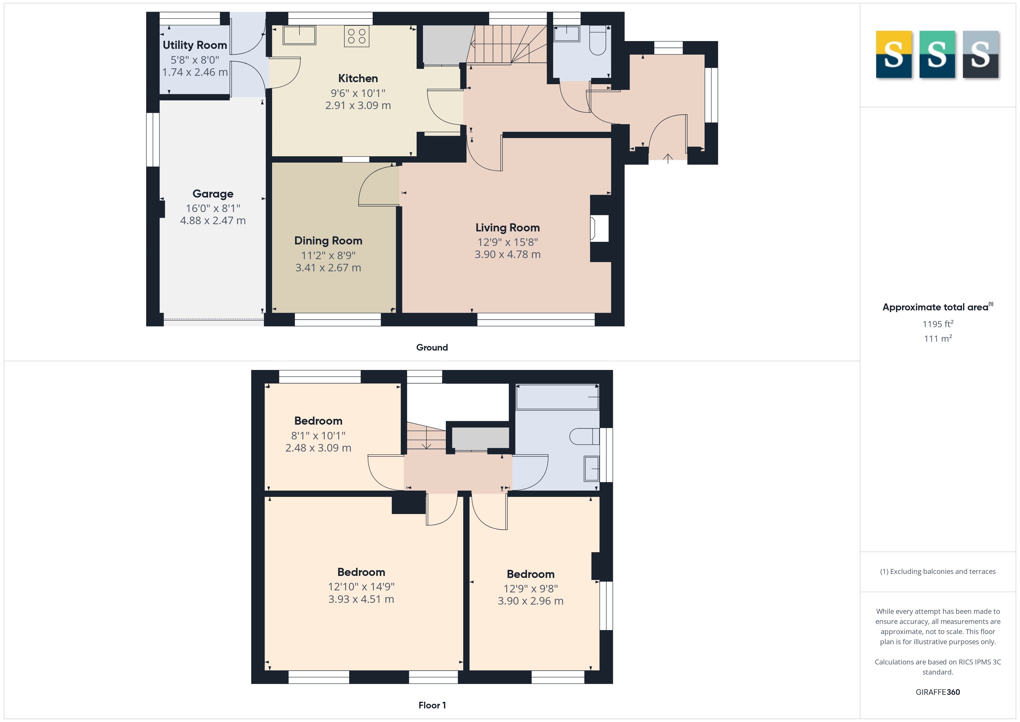 The ground floor features a welcoming porch and entrance hallway, a bright and spacious living room, a separate dining room, and a fitted kitchen with pantry and an adjacent utility room. A downstairs WC and an integral garage provide additional convenience and functionality.