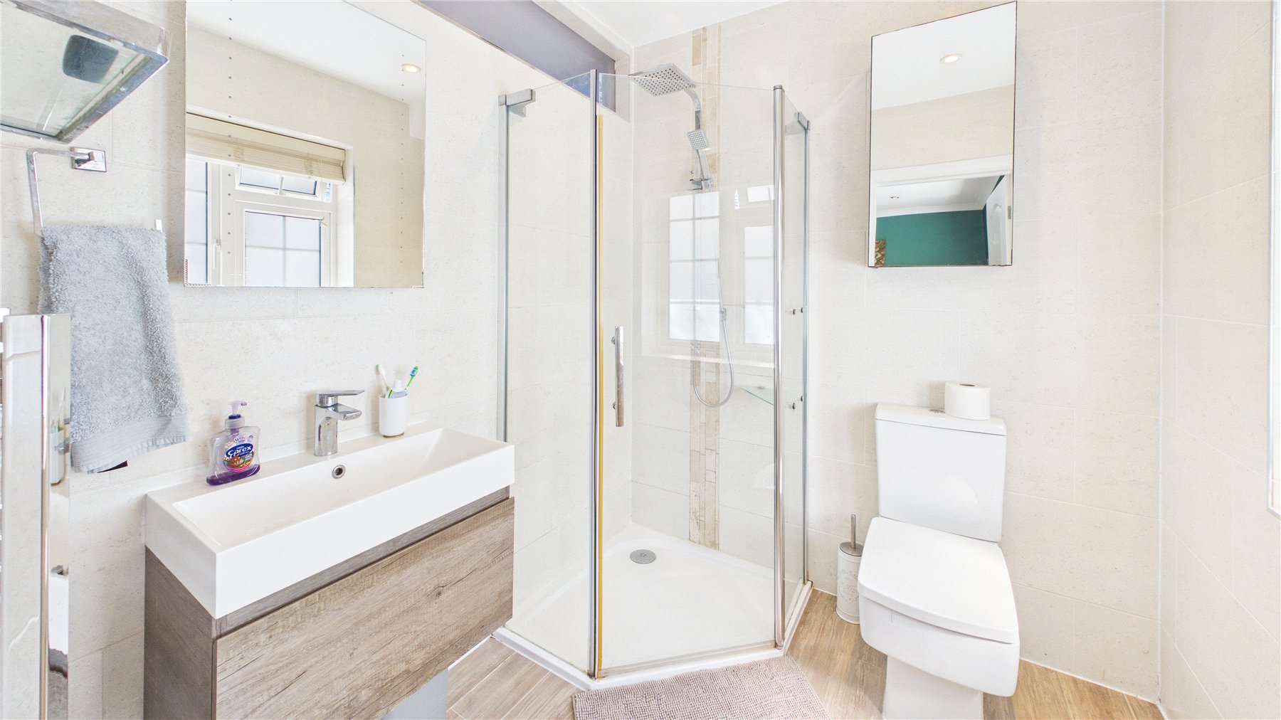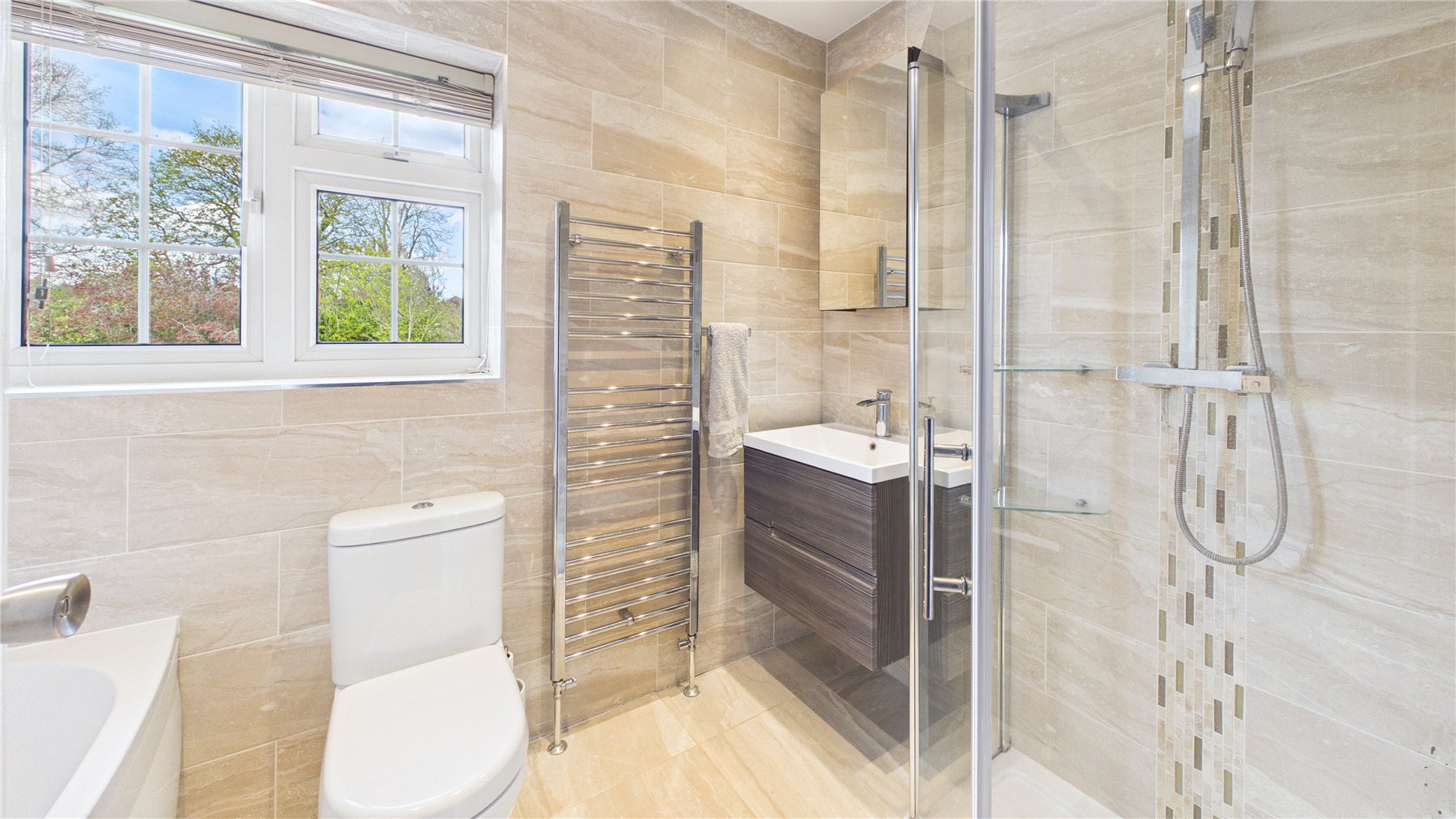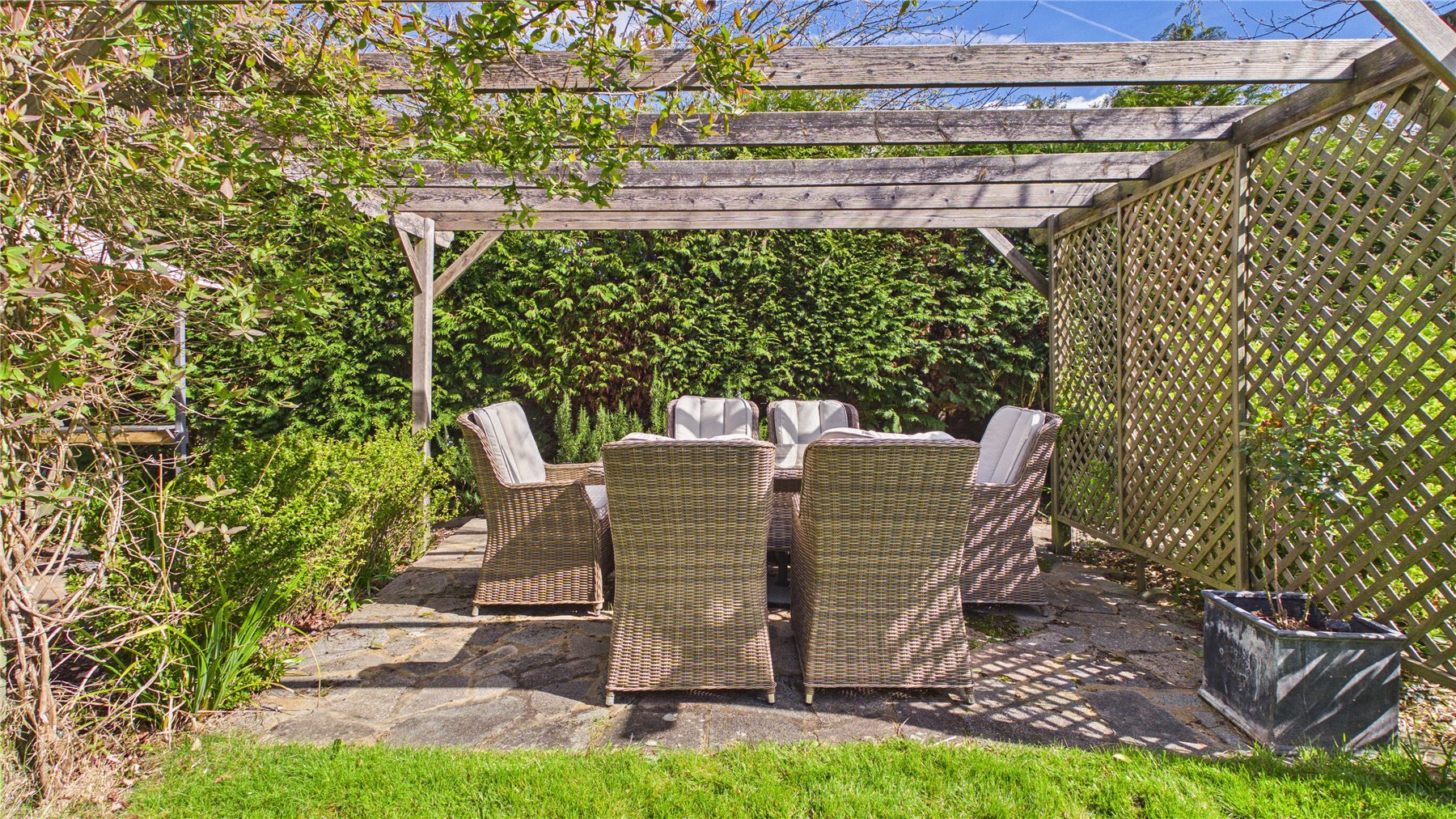 An impressive five-bedroom detached family home, ideally positioned on a popular tree-lined no-through road just moments from Woking town centre. Set on a generous plot, the property offers spacious and well-balanced accommodation, perfectly suited to modern family living.The standout feature is the expansive open-plan kitchen, dining and family space to the rear. Flooded with natural light from multiple skylights and full-width bi-fold doors, this area provides an ideal setting for both everyday living and entertaining. The contemporary kitchen is fitted with sleek units, granite worktops, integrated appliances and a large central island, while a separate utility room adds further practicality.Double glass doors lead through to a welcoming sitting room, complete with a bay window and an elegant central fireplace, creating a cosy yet refined space. A separate study to the front of the house offers the perfect work-from-home solution.Upstairs, the first floor comprises four generously sized double bedrooms, including a principal bedroom with en-suite shower room. A modern family bathroom with both bath and separate shower serves the remaining bedrooms. The second floor provides an additional spacious bedroom with en-suite, along with useful eaves storage.Externally, the property continues to impress. A raised decked terrace spans the rear of the house, ideal for outdoor dining and relaxation, leading down to a well-maintained lawn bordered by mature planting for privacy. A further seating area and pergola-covered terrace offer additional spaces to enjoy the garden. To the front, there is ample off-street parking.Wheatsheaf Close is a highly regarded residential location within easy reach of Woking town centre, which offers a wide range of shopping, dining and leisure facilities. The mainline station provides a fast and frequent service to London Waterloo (approximately 26 minutes), while the M25 and M3 are also easily accessible.