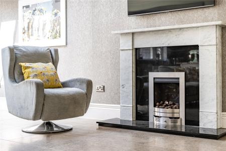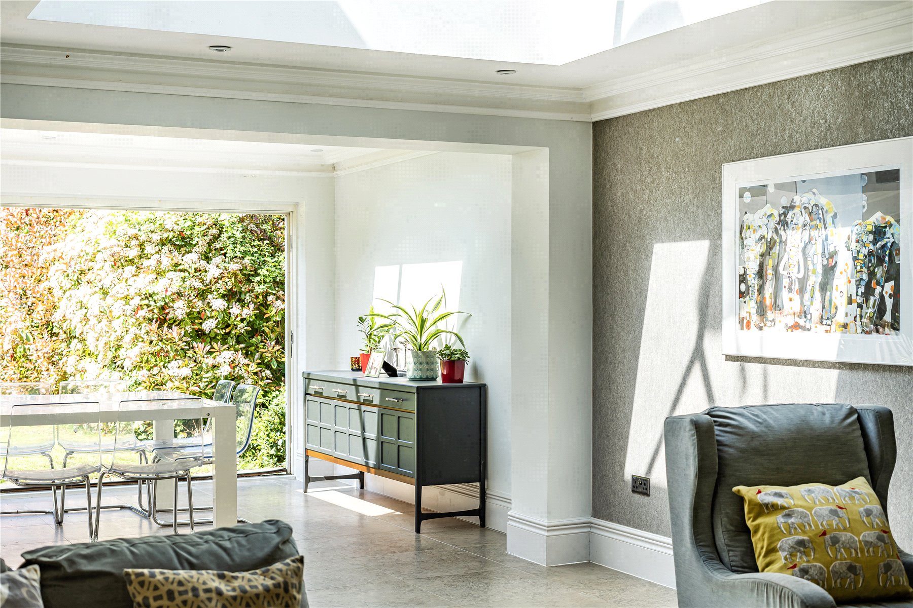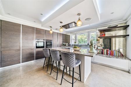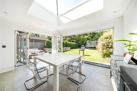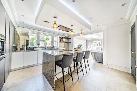 The main living space is located at the rear of the property. Considered to be the heart of the home, the open plan kitchen/family room is the perfect spot to catch up on the day's events or host friends and family. The bespoke Italian kitchen features a range of built in two tone units and is accompanied by quality integrated Siemens appliances, granite worktops and a large central island. Opening to a superb living/dining space where there is ample space for both relaxed and formal seating. Natural light floods the property via two large overhead lanterns and rear facing bi-fold doors.