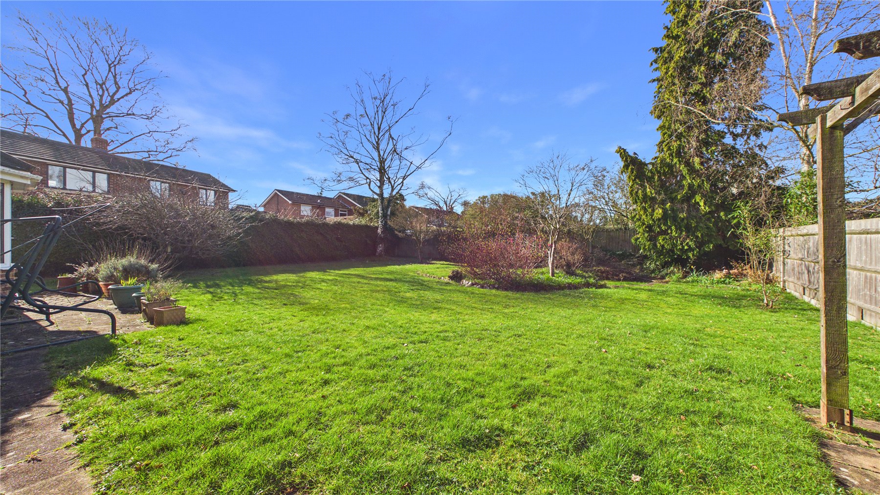 Set back from a quiet road in the heart of Chobham, this detached four-bedroom bungalow occupies a generous plot and off...