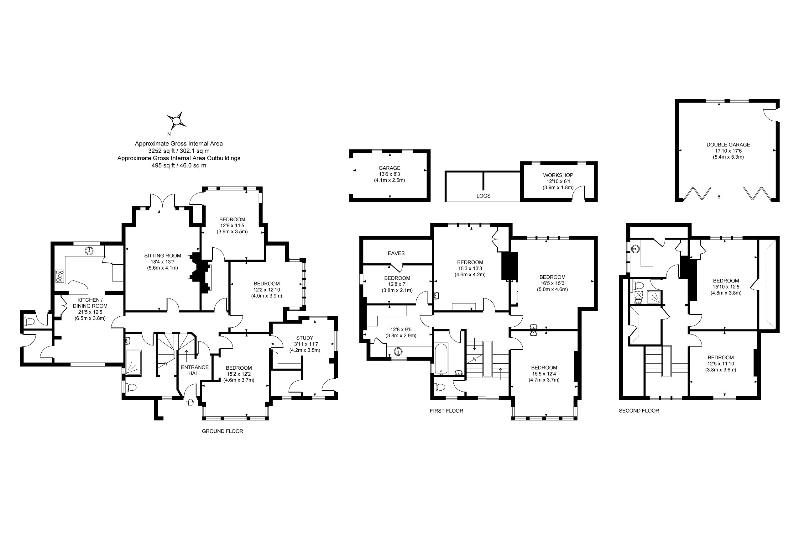 At least six double bedrooms make up the first and second floor, and some creative re design could maximise the space on offer.