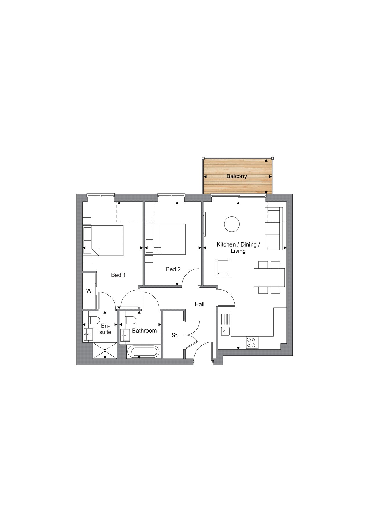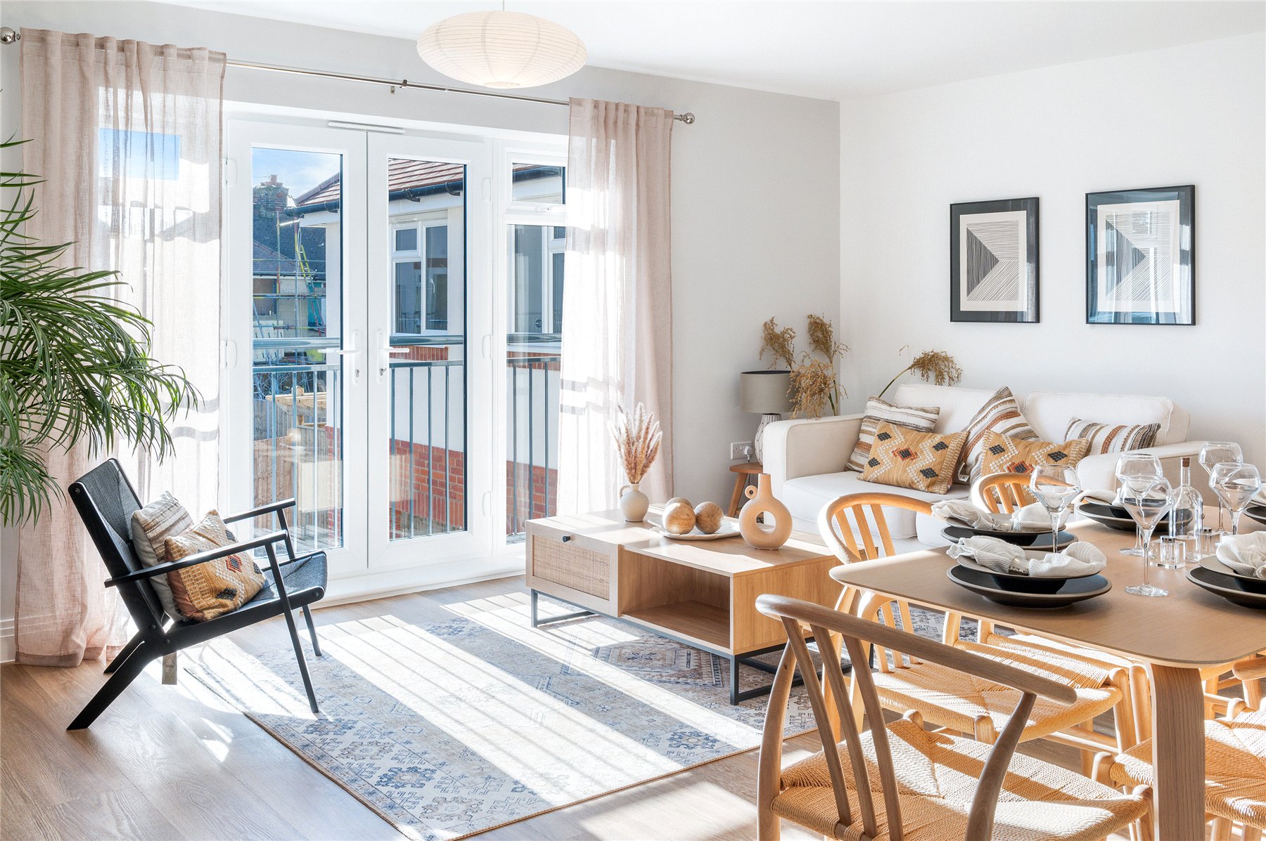 Plot 10, Heatherdown Gardens: a contemporary 2-bed, 2-bath top-floor apartment in Horsell, Woking with lift access and private balcony. Perfect for young professionals seeking sleek interiors, commuter convenience, and low upkeep near London.