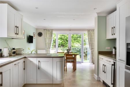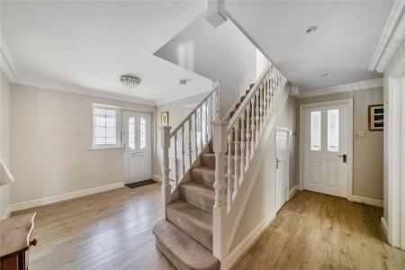 A welcoming entrance hallway leads to a thoughtfully extended kitchen/family room, the true heart of the home, featuring high-spec integrated appliances, ample storage, and a generous living space that flows effortlessly to the gardenideal for entertaining and day-to-day family life. A separate dining room provides the perfect setting for more formal occasions.
