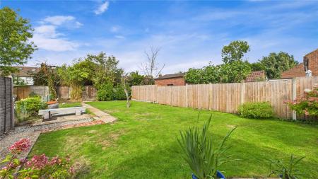 The rear garden is a standout feature of the property. With a paved patio, lawn, and mature planting, it provides a wonderful space to enjoy outdoor dining, gardening, or simply relaxing in a private setting.