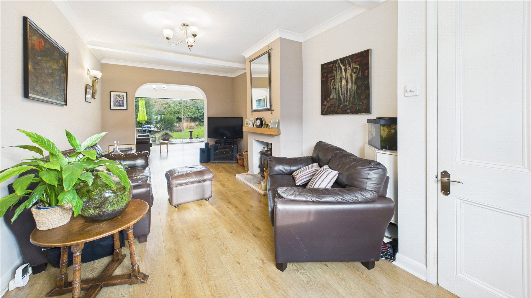 This charming detached home sits proudly on a generous plot and offers beautifully balanced accommodation, combining character, space, and a strong connection to the garden.The ground floor provides excellent entertaining and living space, with a welcoming entrance hall leading through to a spacious living room featuring a central fireplace and views to the front. To the rear, the home truly comes into its own, with a bright and well-proportioned dining area and kitchen that flow seamlessly together, enjoying wonderful outlooks across the garden. Large glazed doors draw in natural light and create an effortless link between indoor and outdoor living, making this an ideal space for both everyday family life and hosting.The kitchen is finished to a high standard, offering ample storage and worktop space, and is complemented by a separate utility area and WC for added practicality.Upstairs, the property offers three well-sized bedrooms, having originally been configured as a four-bedroom home. The current owners have cleverly remodelled the layout to create a generous, modern family bathroom, resulting in excellent bedroom proportions and now with two bathrooms a layout that suits modern living.