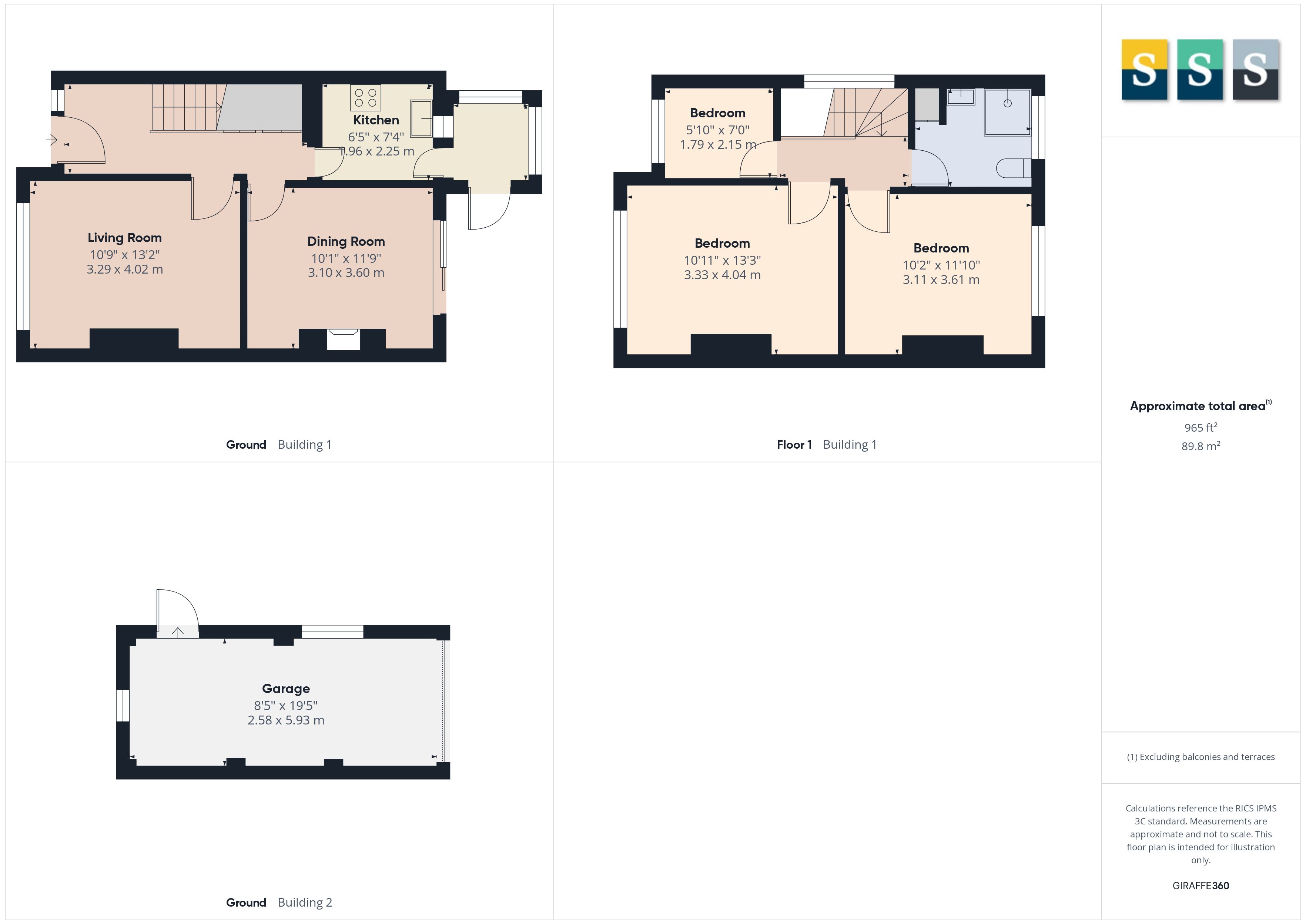This well-proportioned home spans approximately 965 sq ft and is arranged over two floors. The ground floor comprises two generous reception rooms a front-facing living room with a large window allowing for an abundance of natural light, and a separate dining room overlooking the rear garden.