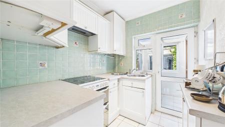 The kitchen has a straightforward layout with direct access to the rear garden.