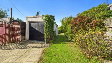 Externally, the property benefits from a detached garage, a private rear garden, and a driveway providing off-street parking.