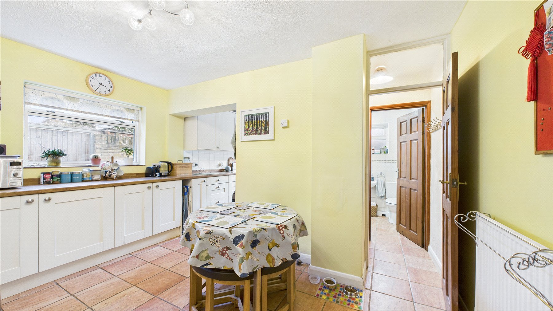 To the rear, the bright kitchen/breakfast room is fitted with a range of Shaker-style units and extensive worktop space, with room for a breakfast table. A useful inner lobby leads to a ground floor bathroom and provides access to the garden.