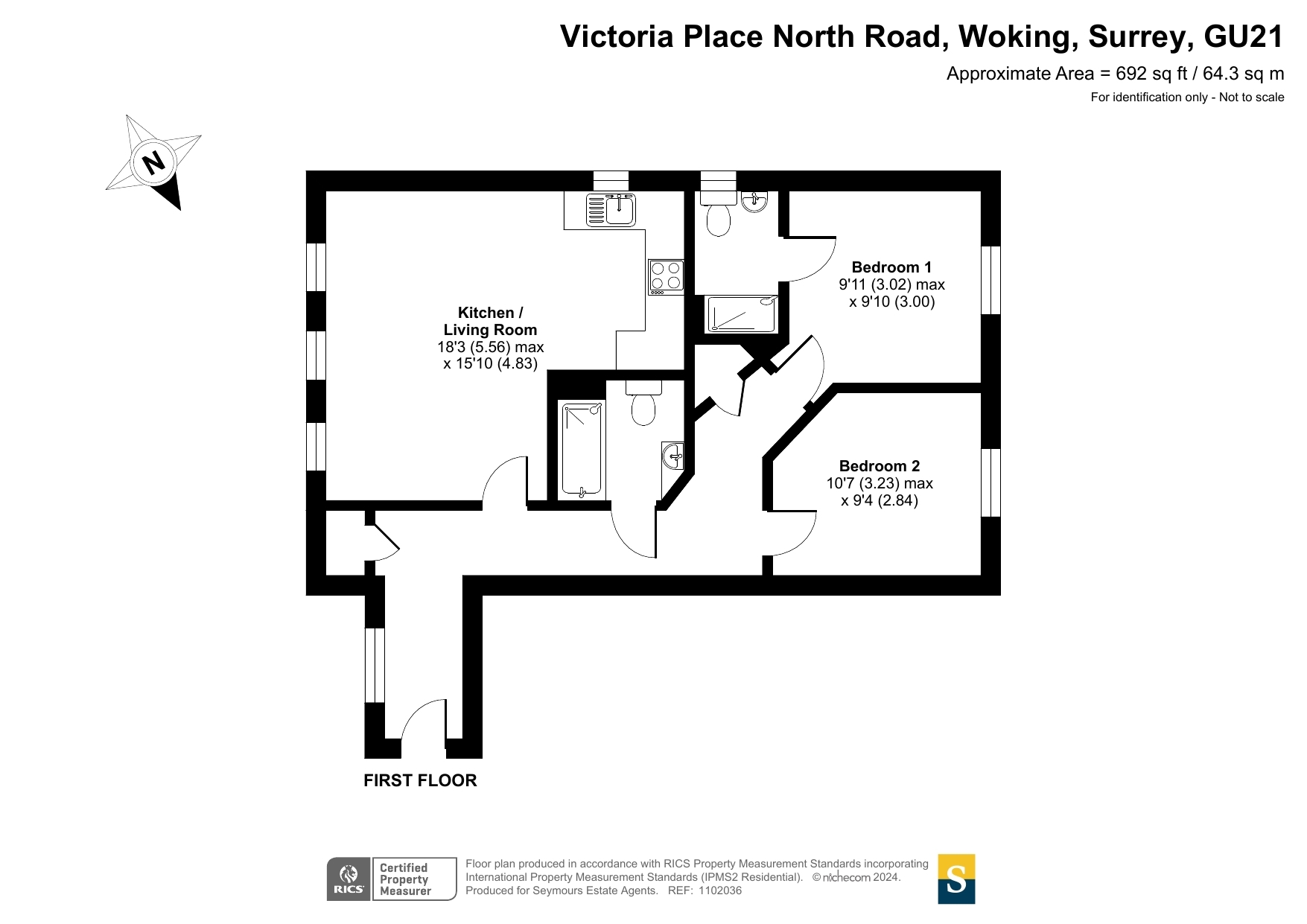 A well-presented first floor apartment ideally located within walking distance of Woking town centre and mainline station, offered to the market with the benefit of no onward chain.The property offers well-balanced accommodation, comprising a spacious living/dining room, a modern fitted kitchen, a principal bedroom with en-suite, a good-sized second bedroom, and a separate family bathroom. The current owner has also made recent tasteful decorative improvements, enhancing the overall presentation and creating a fresh, welcoming feel throughout. Further benefits include a large loft space providing excellent storage and secure allocated parking.This property would make an ideal first-time purchase or investment opportunity, thanks to its convenient location and practical layout. Woking town centre is just a short walk away, offering a wide range of shops, restaurants, leisure facilities and entertainment, including the New Victoria Theatre, cinema and The Lightbox gallery.Wokings mainline station provides excellent transport links with fast and frequent services to London Waterloo in approximately 25 minutes, making it particularly attractive for commuters.For outdoor pursuits, the Basingstoke Canal and River Wey are nearby, offering scenic walking, cycling and fishing opportunities (permit required), while Chobham Common National Nature Reserve is also within easy reach. Golf enthusiasts are well catered for with several nearby courses including Woking Golf Club, one of the oldest in the UK, along with West Hill, Hoebridge, Worplesdon, Chobham and Foxhills, which also features a hotel and spa.The area is also well served by a number of highly regarded state and private schools, including Goldsworth Primary, Hoe Bridge School, St Andrews, Greenfield, Halstead, Woking High School, St Dunstans, Hoe Valley and St John the Baptist School.