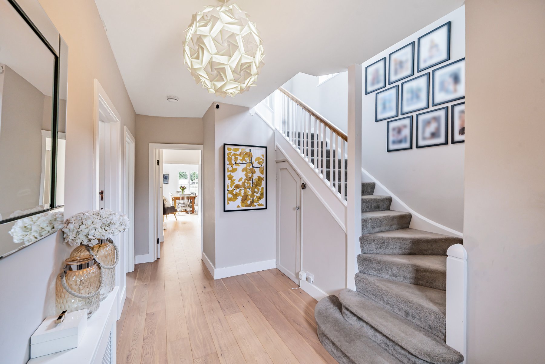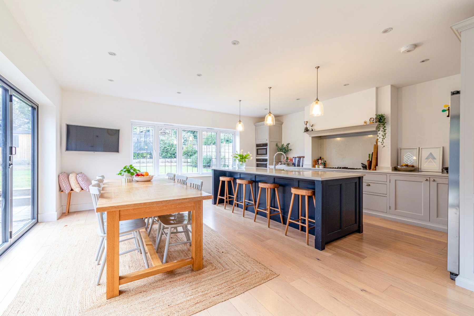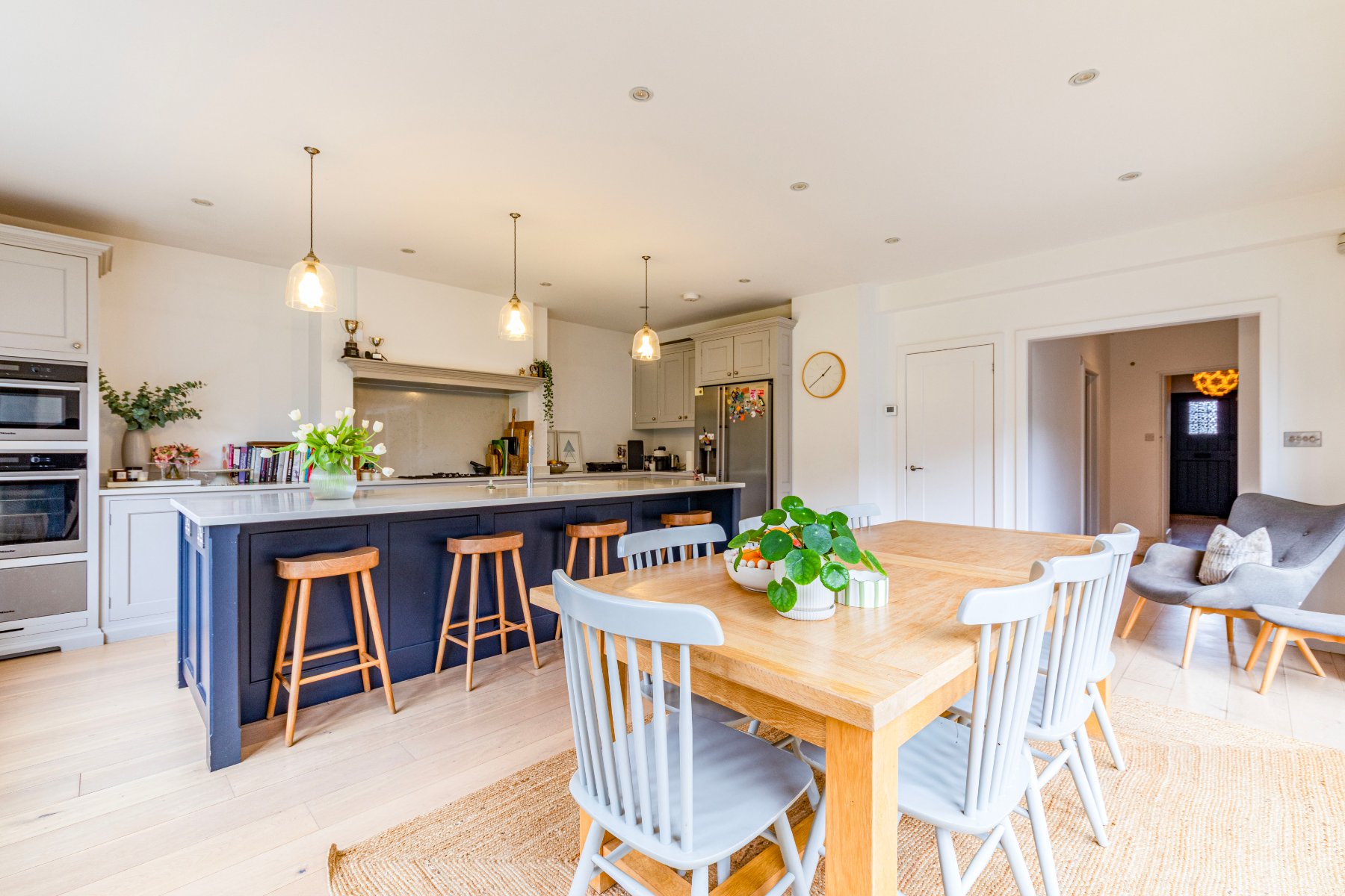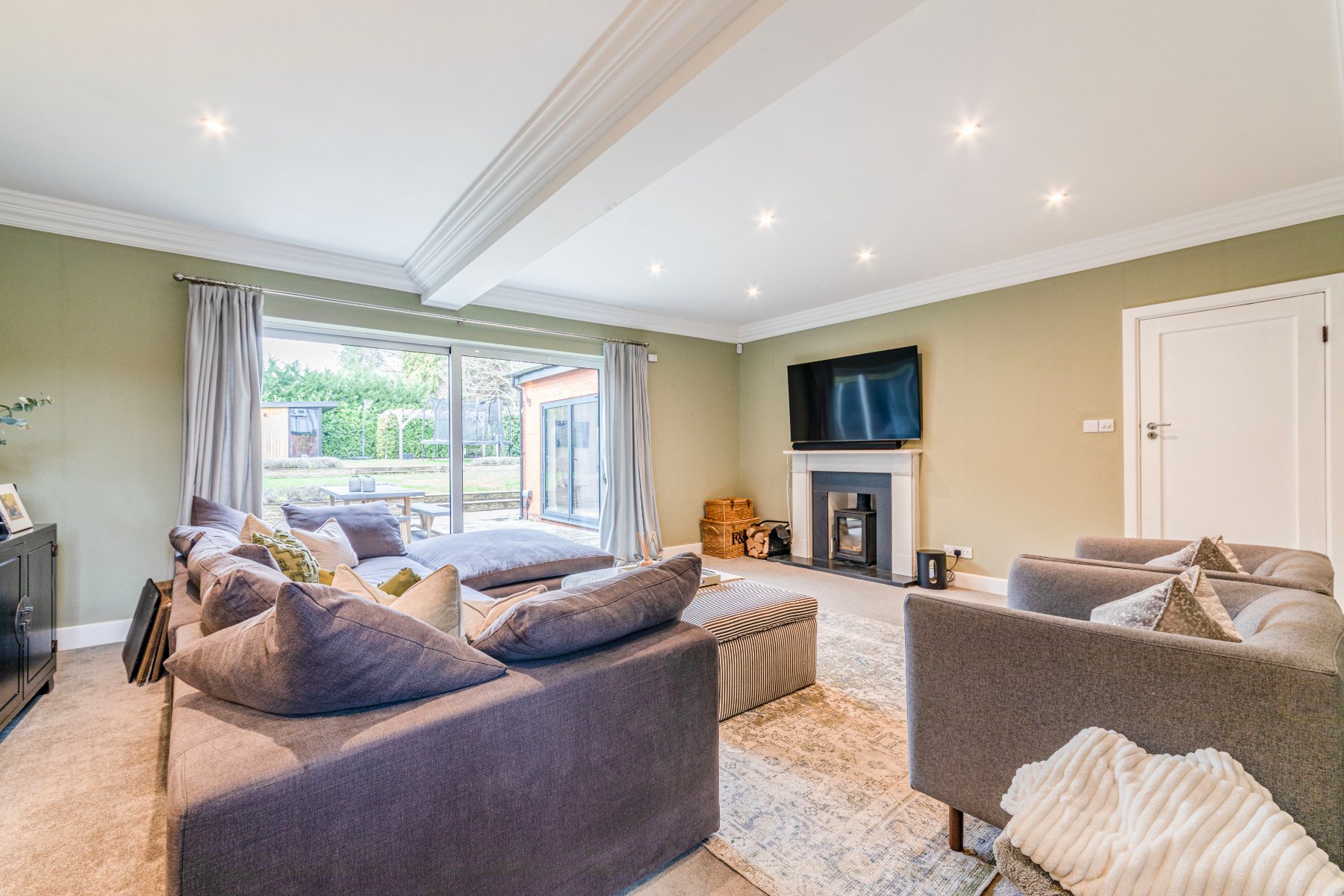 Located in ones of the areas most popular private estates and bursting with much character, an attractive and luxurious 5 bedroom detached family home that was cleverly extended and updated in 2017 to a very high standard. The property comprises of a welcoming entrance hall, a spacious sitting room with a recently installed log burner, a separate dining/family room and a hand-built shaker kitchen/diner from Higham Furniture (solid hardwood thats painted in Little Greene Basalt Blue and French Grey), complete with under floor heating (also in the utility, master en-suite and family bathroom), large island for five stools (with shelving and space for an American style fridge/freezer), a walk in pantry and a utility room. Further features in the kitchen include integrated appliances by Miele (two ovens - one combi oven/microwave; one oven, one warming draw, dishwasher, 5 ring gas hob), Quooker on-demand hot tap, Franke double sink basin, SG Carrara Quartz worktops. The master bedroom features a walk-in wardrobe and an ensuite shower, whilst the guest bedroom has an ensuite shower, and the remaining 3 bedrooms share the use of the family bathroom.