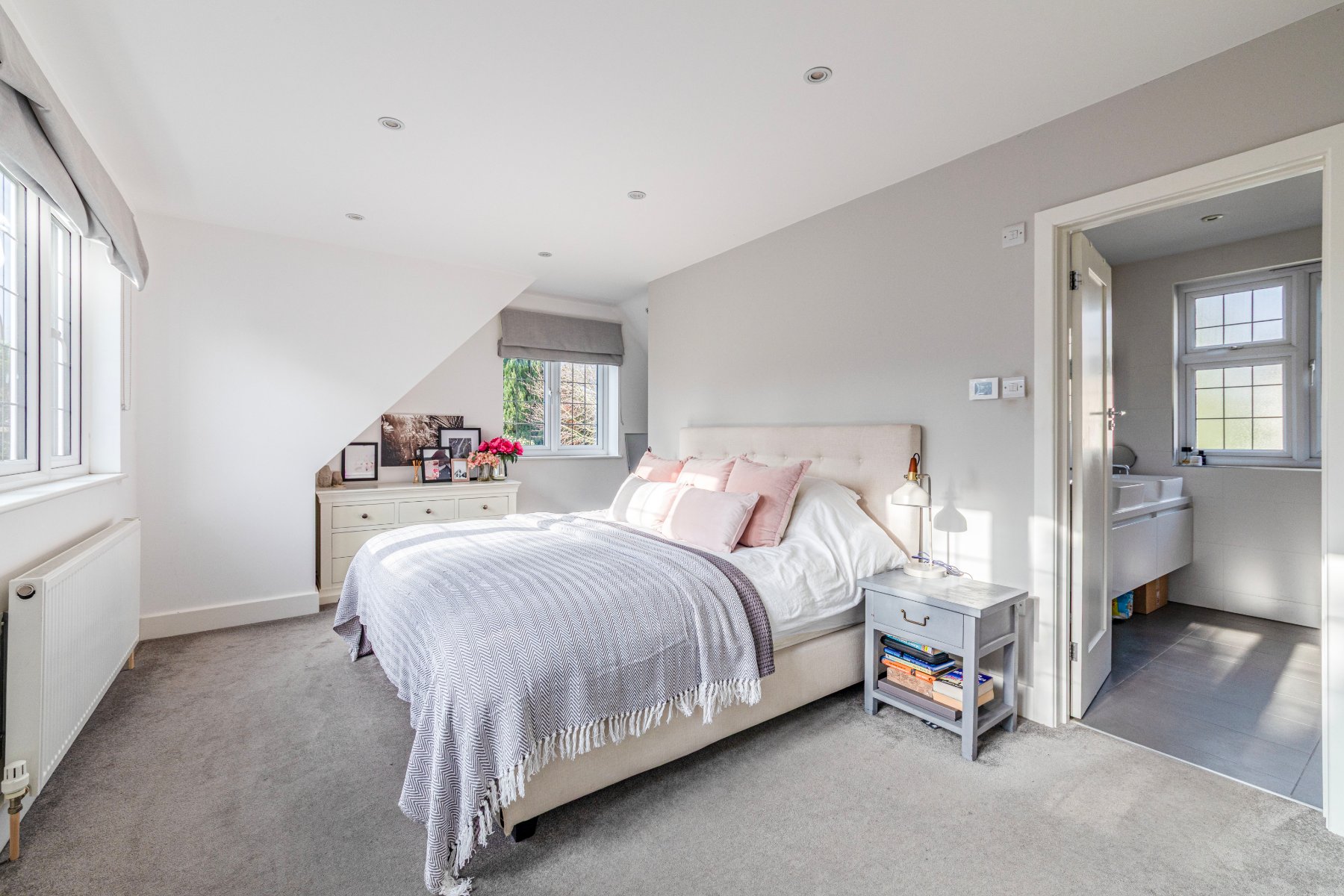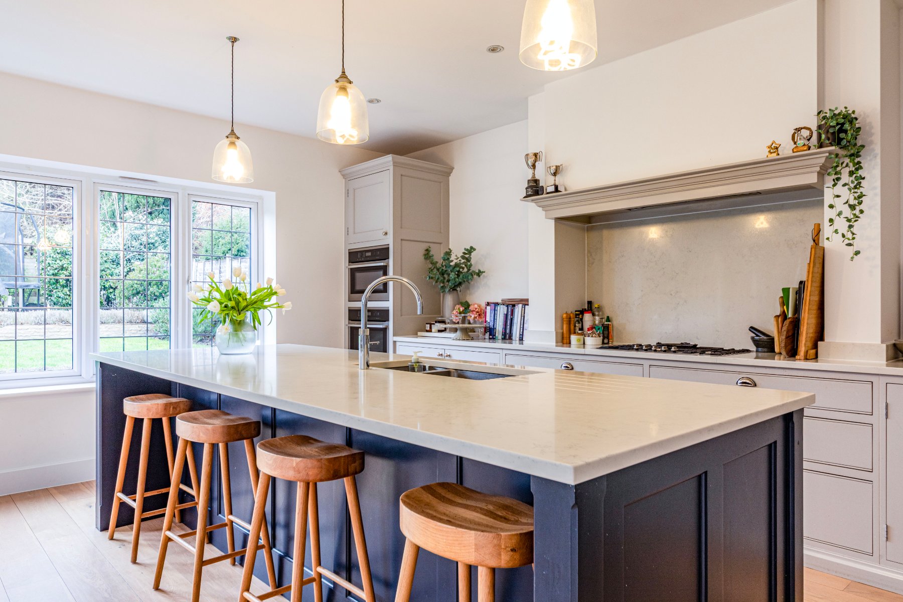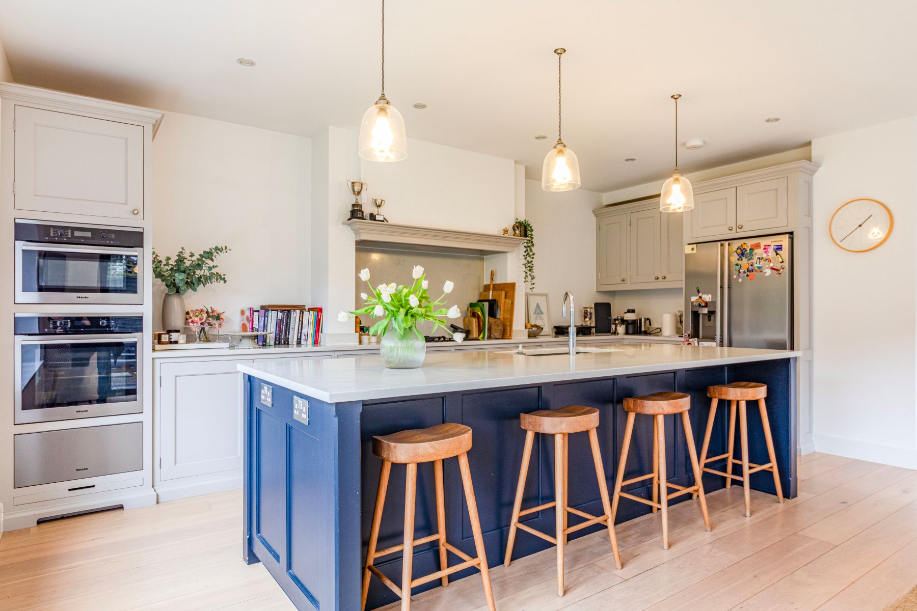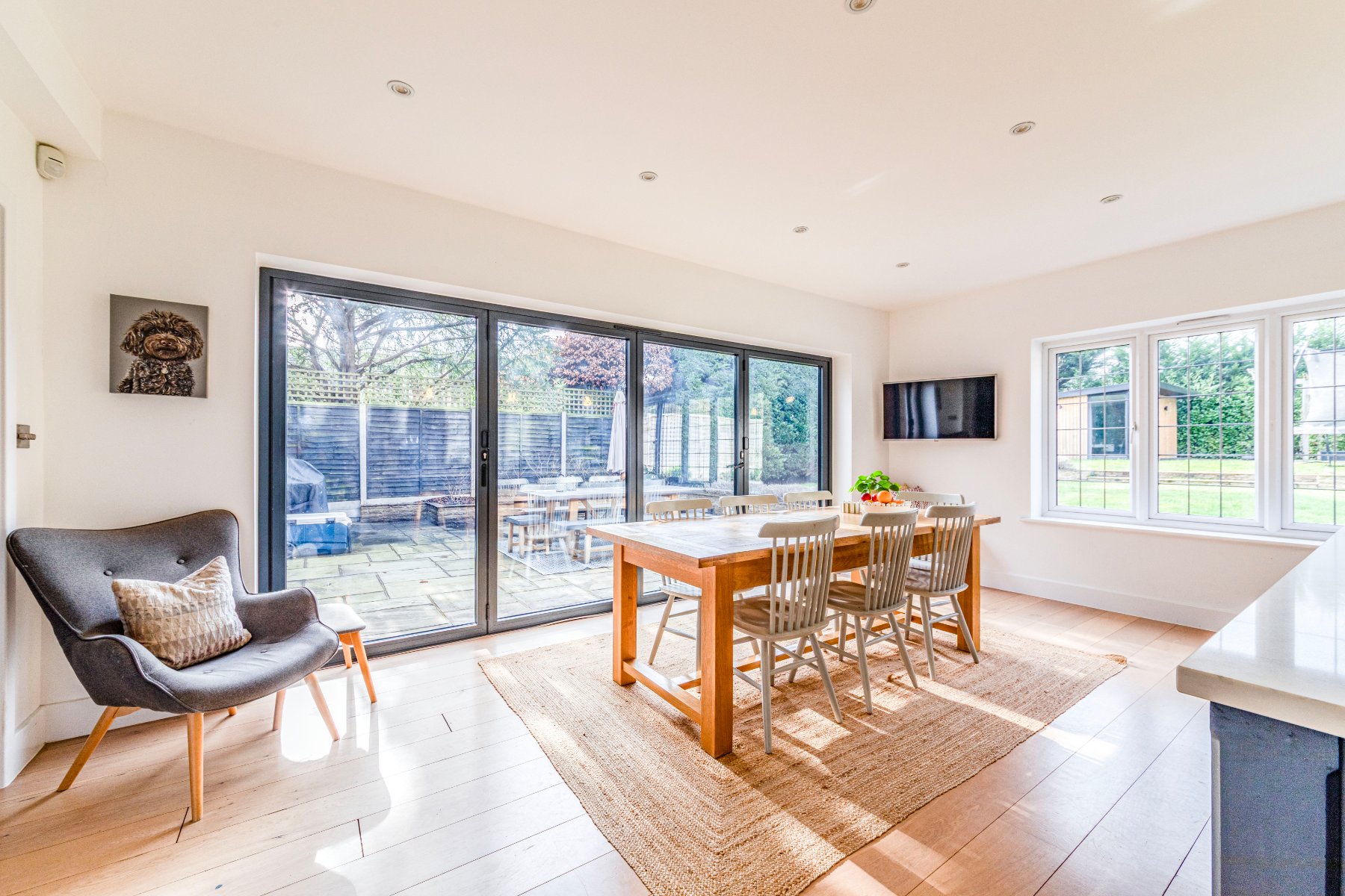 Located in ones of the areas most popular private estates and bursting with much character, an attractive and luxurious 5 bedroom detached family home that was cleverly extended and updated in 2017 to a very high standard. The property comprises of a welcoming entrance hall, a spacious sitting room with a recently installed log burner, a separate dining/family room and a hand-built shaker kitchen/diner from Higham Furniture (solid hardwood thats painted in Little Greene Basalt Blue and French Grey), complete with under floor heating (also in the utility, master en-suite and family bathroom), large island for five stools (with shelving and space for an American style fridge/freezer), a walk in pantry and a utility room. Further features in the kitchen include integrated appliances by Miele (two ovens - one combi oven/microwave; one oven, one warming draw, dishwasher, 5 ring gas hob), Quooker on-demand hot tap, Franke double sink basin, SG Carrara Quartz worktops. The master bedroom features a walk-in wardrobe and an ensuite shower, whilst the guest bedroom has an ensuite shower, and the remaining 3 bedrooms share the use of the family bathroom.
