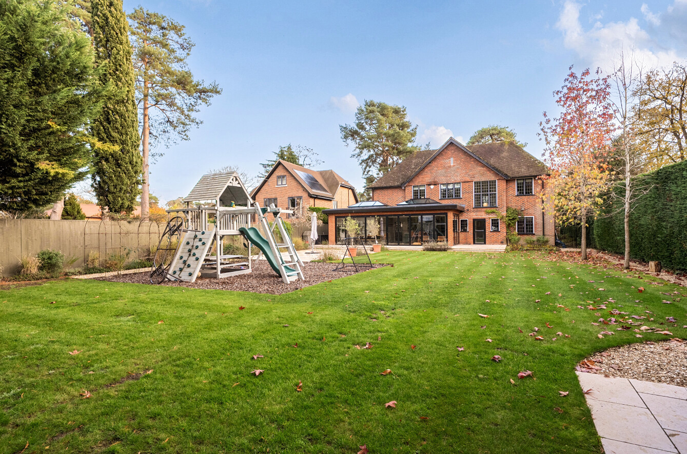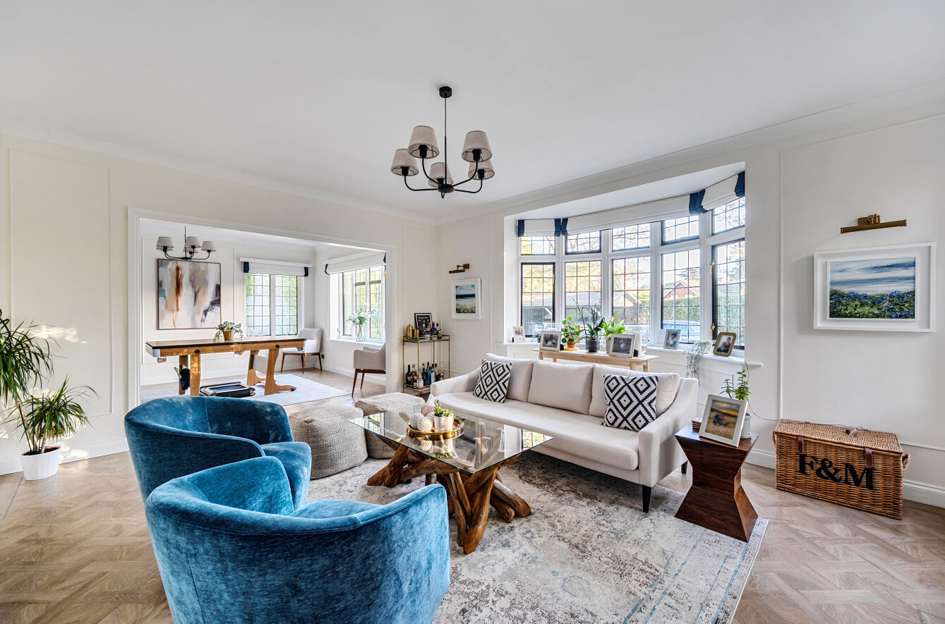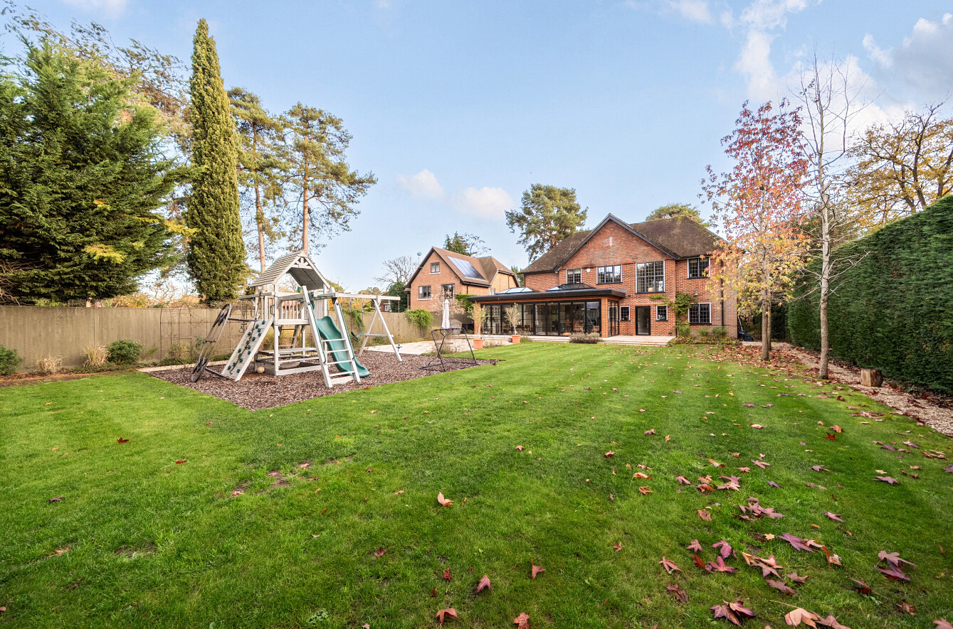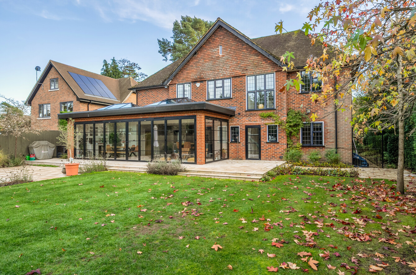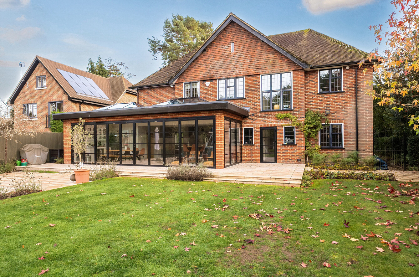 Offering a private retreat for those seeking a peaceful lifestyle, this exceptional home boasts five bedrooms, four reception rooms and three bath/shower rooms comprising two en-suite bathrooms, a family bathroom as well as a downstairs separate WC, arranged over an impressive 3,410 sq ft, providing generous and versatile living space for the whole family.Every room has been meticulously redesigned, showcasing premium materials, refined detailing and a contemporary aesthetic that blends elegance with comfort. Bright, welcoming interiors flow seamlessly throughout the house, reflecting the quality and craftsmanship of the recent renovation.At the heart of the home is a spectacular open-plan kitchen and dining room, flooded with natural light and enjoying beautiful views over the garden. This stunning space is perfectly designed for modern living and entertaining, with ample room for large gatherings and seamless access to the patio for indoor-outdoor entertaining during the warmer months.Outside, the beautifully landscaped garden and stylish patio area create an ideal setting for both relaxation and hosting guests. Additional features include ample off-street parking and a double carport, offering convenience and security.Secluded yet easily accessible, this luxurious home is positioned along a private road, making it perfect for those seeking sophisticated living in a serene rural setting. A rare opportunity to acquire a truly turnkey countryside residence finished to the very highest standard.Woking has a thriving town centre offering extensive shopping, dining and leisure facilities including The New Victoria Theatre & Cinema and The Lightbox Gallery. Golfers are well served by a choice of clubs including Woking Golf Club (one of the oldest in the UK, founded in 1893), West Hill, Hoebridge, Worplesdon, Chobham and Foxhills (with spa and hotel). The Basingstoke Canal and the River Wey are close by for walking, cycling and fishing (permit required), while nearby Chobham Common is a National Nature Reserve.Equally convenient is West Byfleet, a vibrant village-style centre offering a wide range of amenities including independent cafés and restaurants, local shops, a Waitrose supermarket, health and fitness facilities and a medical centre. West Byfleet railway station provides direct services to London Waterloo, making it an excellent commuter location. The nearby recreation ground, woodland walks, Brooklands Community Park and the historic Brooklands Museum and Mercedes-Benz World offer further leisure opportunities. Situated between Woking and West Byfleet, the property enjoys easy access to the full range of surrounding town and village amenities.
