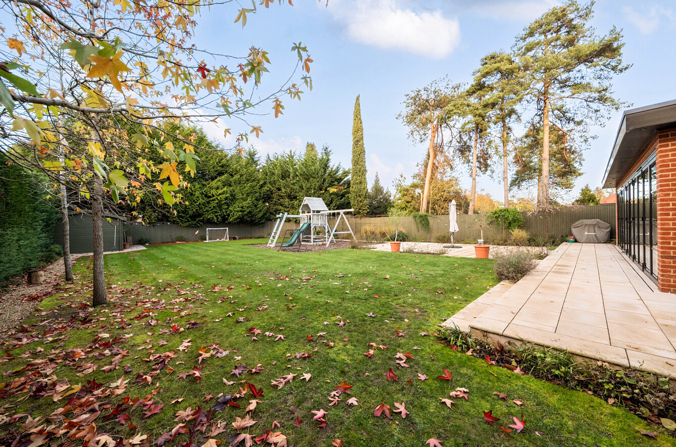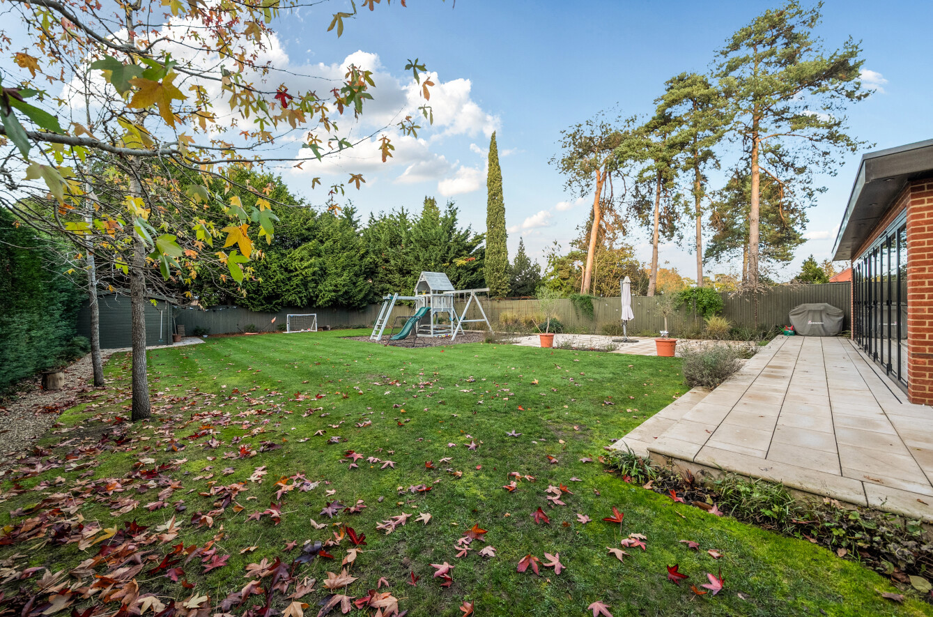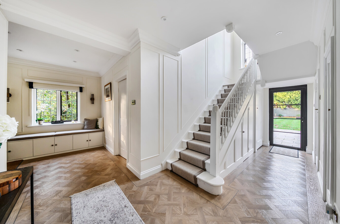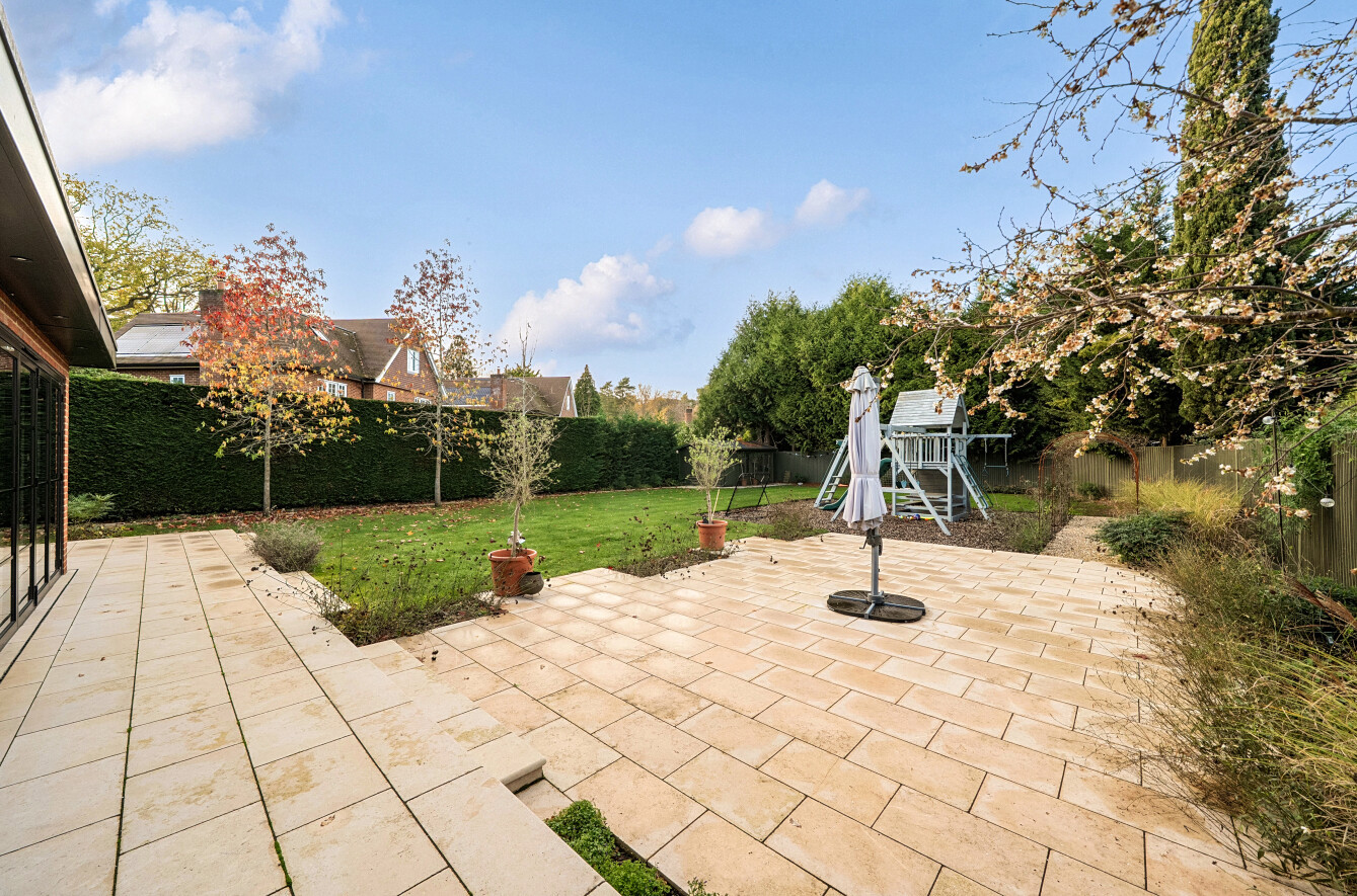 Offering a private retreat for those seeking a peaceful lifestyle, this exceptional home boasts five bedrooms, four reception rooms and three bath/shower rooms comprising two en-suite bathrooms, a family bathroom as well as a downstairs separate WC, arranged over an impressive 3,410 sq ft, providing generous and versatile living space for the whole family.Every room has been meticulously redesigned, showcasing premium materials, refined detailing and a contemporary aesthetic that blends elegance with comfort. Bright, welcoming interiors flow seamlessly throughout the house, reflecting the quality and craftsmanship of the recent renovation.At the heart of the home is a spectacular open-plan kitchen and dining room, flooded with natural light and enjoying beautiful views over the garden. This stunning space is perfectly designed for modern living and entertaining, with ample room for large gatherings and seamless access to the patio for indoor-outdoor entertaining during the warmer months.Outside, the beautifully landscaped garden and stylish patio area create an ideal setting for both relaxation and hosting guests. Additional features include ample off-street parking and a double carport, offering convenience and security.Secluded yet easily accessible, this luxurious home is positioned along a private road, making it perfect for those seeking sophisticated living in a serene rural setting. A rare opportunity to acquire a truly turnkey countryside residence finished to the very highest standard.Woking has a thriving town centre offering extensive shopping, dining and leisure facilities including The New Victoria Theatre & Cinema and The Lightbox Gallery. Golfers are well served by a choice of clubs including Woking Golf Club (one of the oldest in the UK, founded in 1893), West Hill, Hoebridge, Worplesdon, Chobham and Foxhills (with spa and hotel). The Basingstoke Canal and the River Wey are close by for walking, cycling and fishing (permit required), while nearby Chobham Common is a National Nature Reserve.Equally convenient is West Byfleet, a vibrant village-style centre offering a wide range of amenities including independent cafés and restaurants, local shops, a Waitrose supermarket, health and fitness facilities and a medical centre. West Byfleet railway station provides direct services to London Waterloo, making it an excellent commuter location. The nearby recreation ground, woodland walks, Brooklands Community Park and the historic Brooklands Museum and Mercedes-Benz World offer further leisure opportunities. Situated between Woking and West Byfleet, the property enjoys easy access to the full range of surrounding town and village amenities.