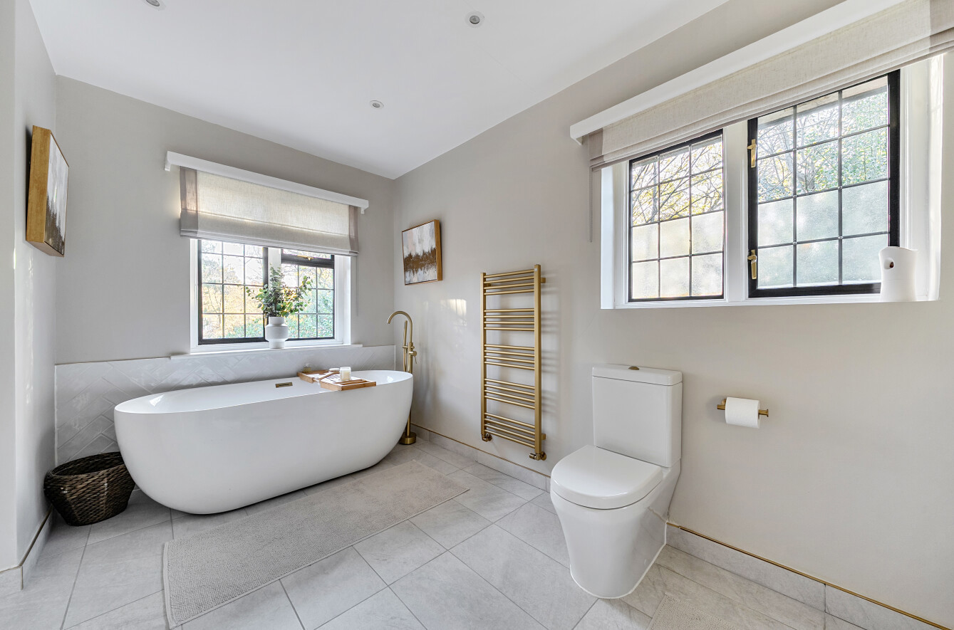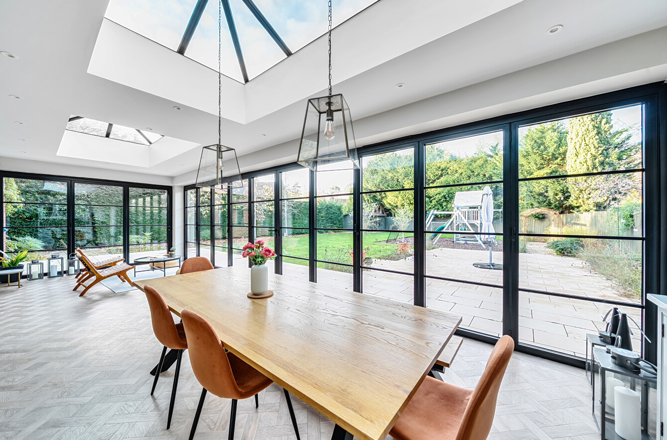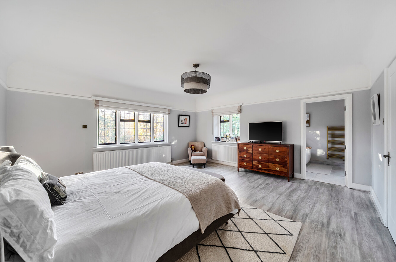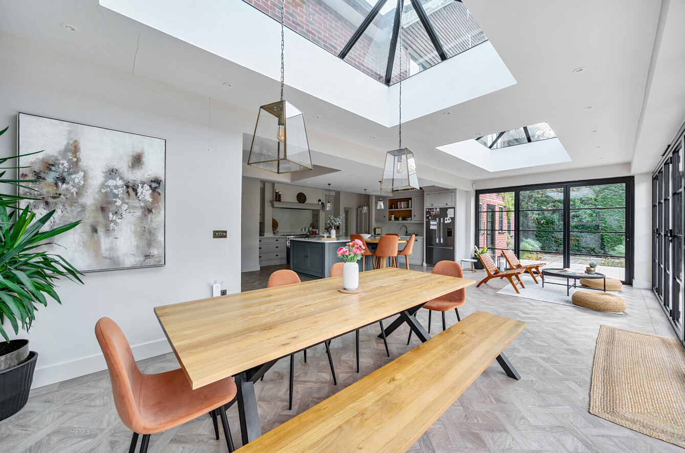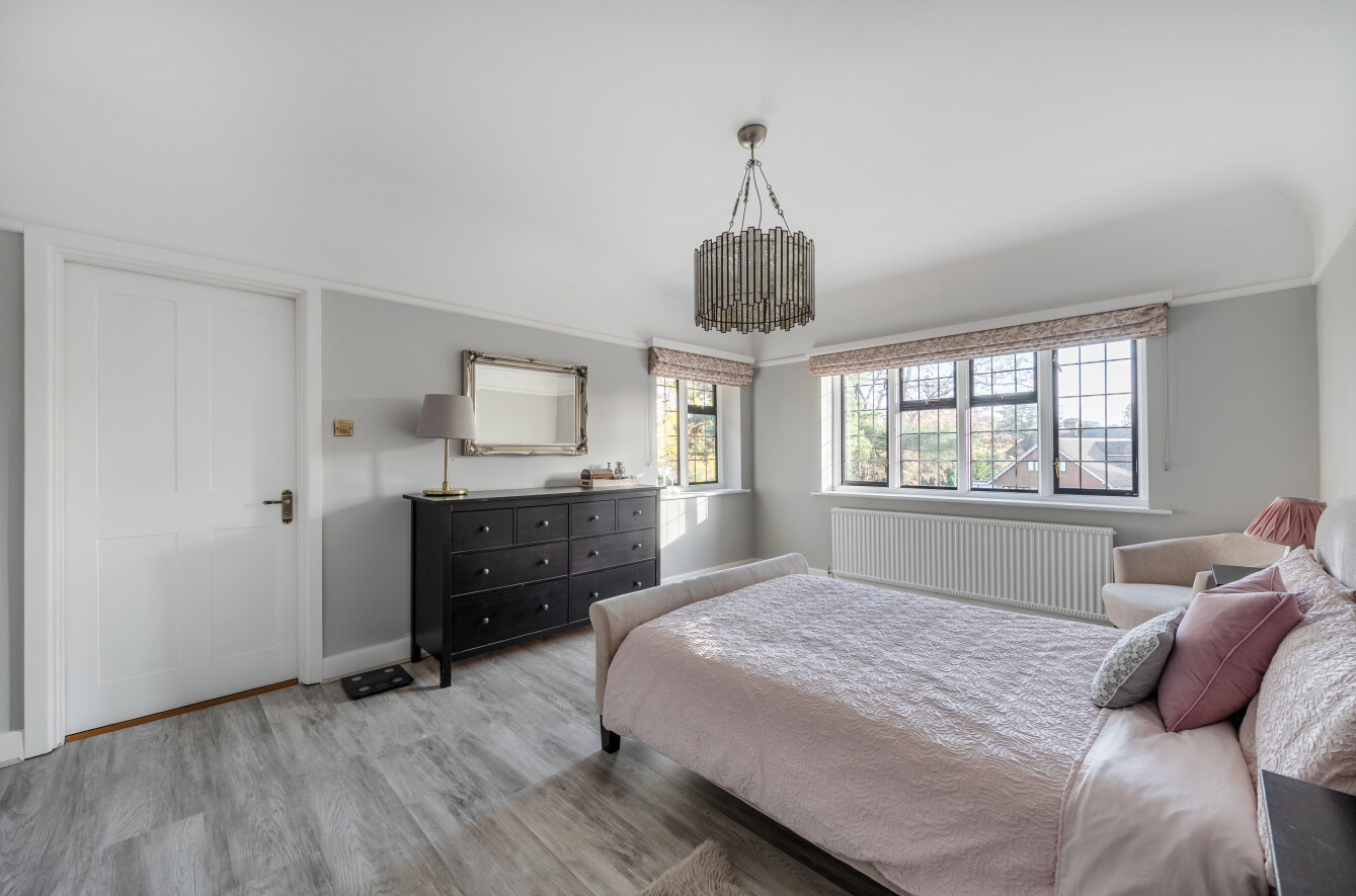 Offering a private retreat for those seeking a peaceful lifestyle, this exceptional home boasts five bedrooms, four reception rooms and three bath/shower rooms comprising two en-suite bathrooms, a family bathroom as well as a downstairs separate WC, arranged over an impressive 3,410 sq ft, providing generous and versatile living space for the whole family.Every room has been meticulously redesigned, showcasing premium materials, refined detailing and a contemporary aesthetic that blends elegance with comfort. Bright, welcoming interiors flow seamlessly throughout the house, reflecting the quality and craftsmanship of the recent renovation.At the heart of the home is a spectacular open-plan kitchen and dining room, flooded with natural light and enjoying beautiful views over the garden. This stunning space is perfectly designed for modern living and entertaining, with ample room for large gatherings and seamless access to the patio for indoor-outdoor entertaining during the warmer months.Outside, the beautifully landscaped garden and stylish patio area create an ideal setting for both relaxation and hosting guests. Additional features include ample off-street parking and a double carport, offering convenience and security.Secluded yet easily accessible, this luxurious home is positioned along a private road, making it perfect for those seeking sophisticated living in a serene rural setting. A rare opportunity to acquire a truly turnkey countryside residence finished to the very highest standard.Woking has a thriving town centre offering extensive shopping, dining and leisure facilities including The New Victoria Theatre & Cinema and The Lightbox Gallery. Golfers are well served by a choice of clubs including Woking Golf Club (one of the oldest in the UK, founded in 1893), West Hill, Hoebridge, Worplesdon, Chobham and Foxhills (with spa and hotel). The Basingstoke Canal and the River Wey are close by for walking, cycling and fishing (permit required), while nearby Chobham Common is a National Nature Reserve.Equally convenient is West Byfleet, a vibrant village-style centre offering a wide range of amenities including independent cafés and restaurants, local shops, a Waitrose supermarket, health and fitness facilities and a medical centre. West Byfleet railway station provides direct services to London Waterloo, making it an excellent commuter location. The nearby recreation ground, woodland walks, Brooklands Community Park and the historic Brooklands Museum and Mercedes-Benz World offer further leisure opportunities. Situated between Woking and West Byfleet, the property enjoys easy access to the full range of surrounding town and village amenities.