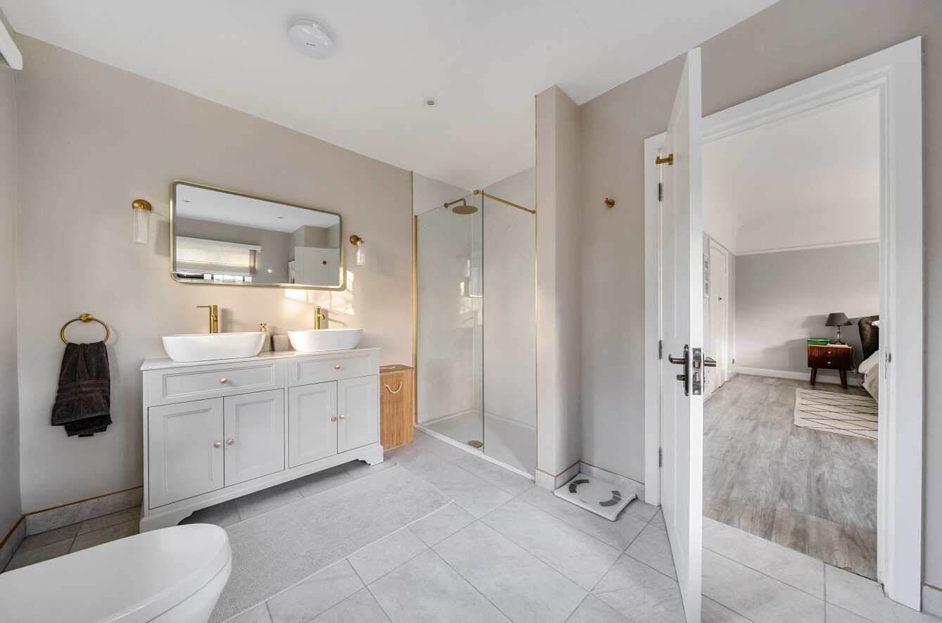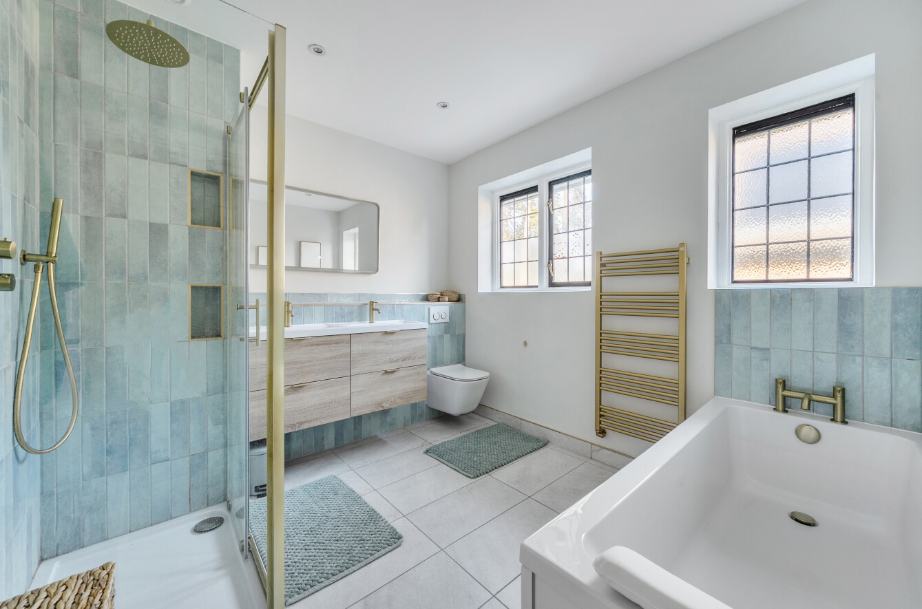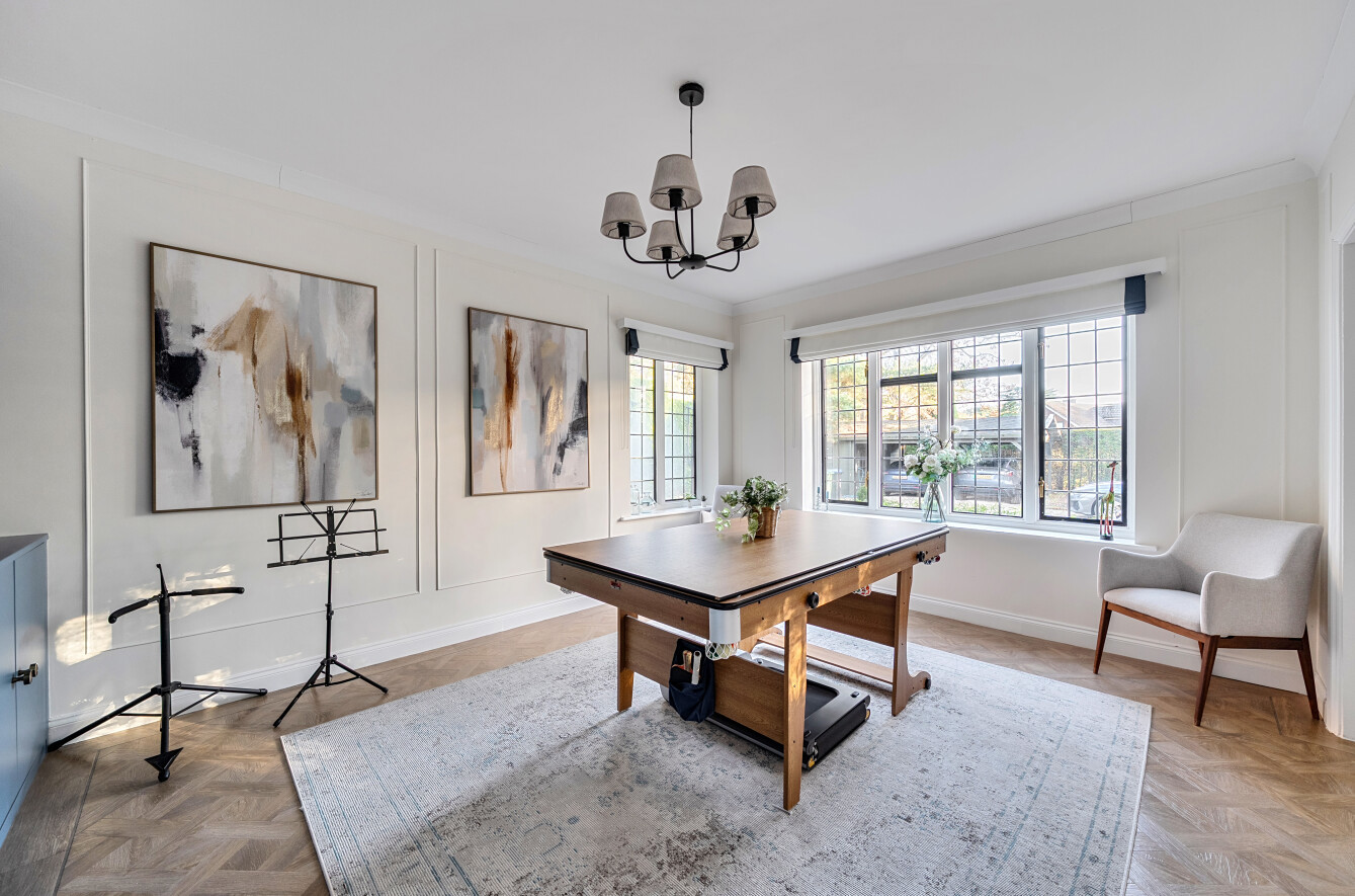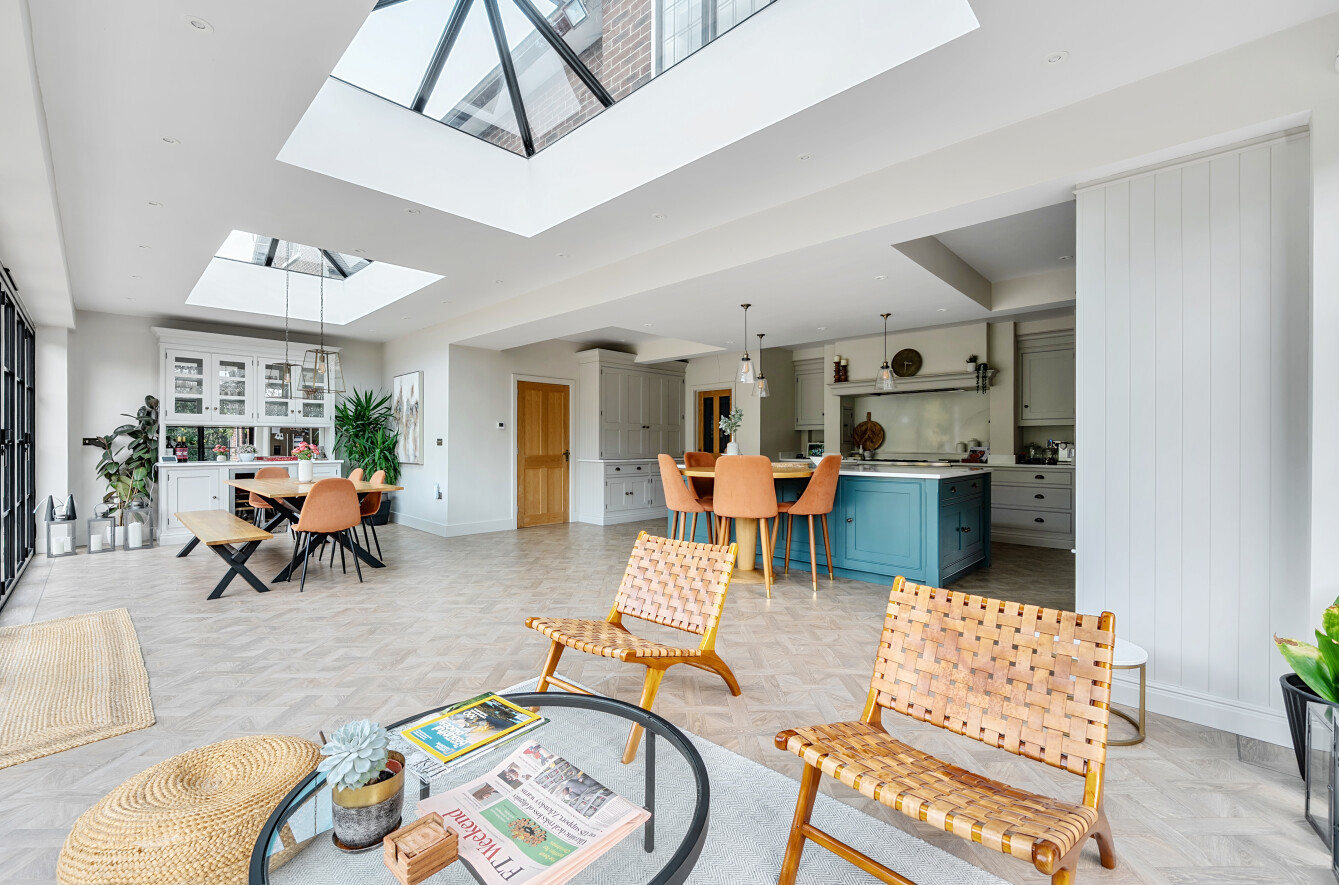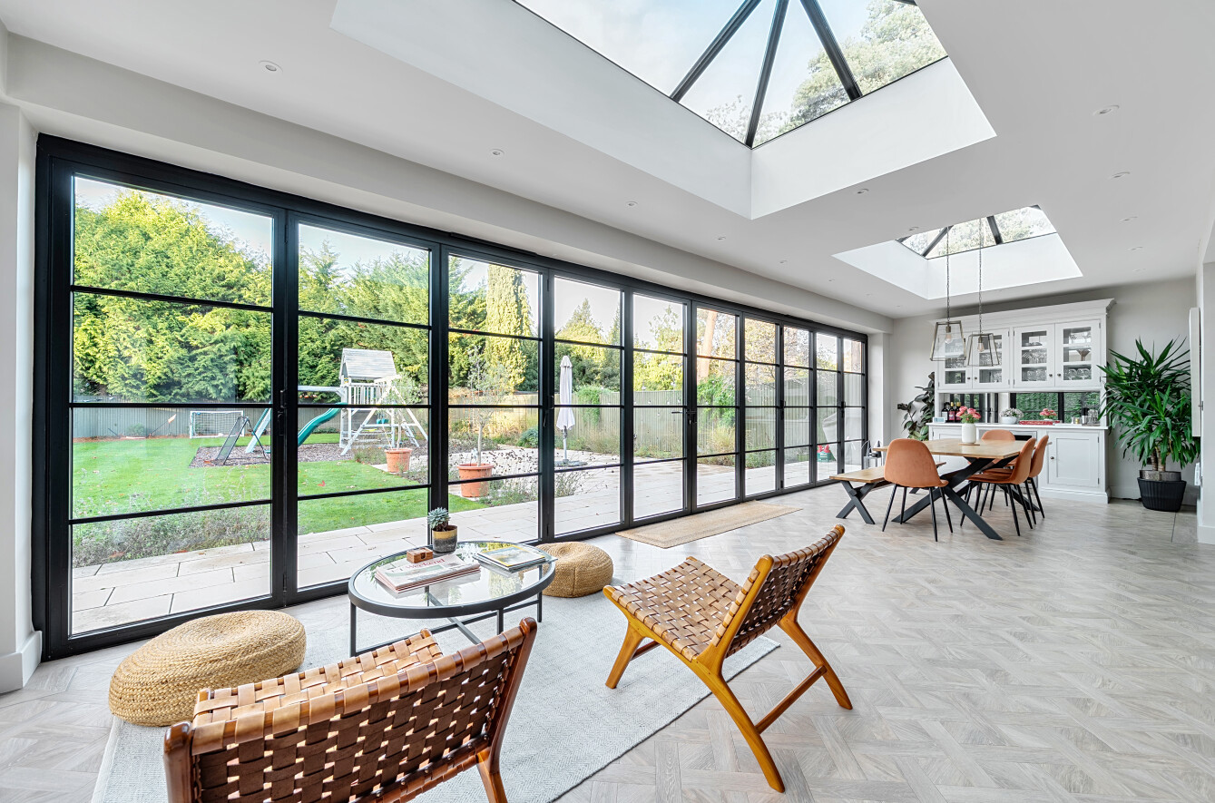 Offering a private retreat for those seeking a peaceful lifestyle, this exceptional home boasts five bedrooms, four reception rooms and three bath/shower rooms comprising two en-suite bathrooms, a family bathroom as well as a downstairs separate WC, arranged over an impressive 3,410 sq ft, providing generous and versatile living space for the whole family.Every room has been meticulously redesigned, showcasing premium materials, refined detailing and a contemporary aesthetic that blends elegance with comfort. Bright, welcoming interiors flow seamlessly throughout the house, reflecting the quality and craftsmanship of the recent renovation.At the heart of the home is a spectacular open-plan kitchen and dining room, flooded with natural light and enjoying beautiful views over the garden. This stunning space is perfectly designed for modern living and entertaining, with ample room for large gatherings and seamless access to the patio for indoor-outdoor entertaining during the warmer months.Outside, the beautifully landscaped garden and stylish patio area create an ideal setting for both relaxation and hosting guests. Additional features include ample off-street parking and a double carport, offering convenience and security.Secluded yet easily accessible, this luxurious home is positioned along a private road, making it perfect for those seeking sophisticated living in a serene rural setting. A rare opportunity to acquire a truly turnkey countryside residence finished to the very highest standard.Woking has a thriving town centre offering extensive shopping, dining and leisure facilities including The New Victoria Theatre & Cinema and The Lightbox Gallery. Golfers are well served by a choice of clubs including Woking Golf Club (one of the oldest in the UK, founded in 1893), West Hill, Hoebridge, Worplesdon, Chobham and Foxhills (with spa and hotel). The Basingstoke Canal and the River Wey are close by for walking, cycling and fishing (permit required), while nearby Chobham Common is a National Nature Reserve.Equally convenient is West Byfleet, a vibrant village-style centre offering a wide range of amenities including independent cafés and restaurants, local shops, a Waitrose supermarket, health and fitness facilities and a medical centre. West Byfleet railway station provides direct services to London Waterloo, making it an excellent commuter location. The nearby recreation ground, woodland walks, Brooklands Community Park and the historic Brooklands Museum and Mercedes-Benz World offer further leisure opportunities. Situated between Woking and West Byfleet, the property enjoys easy access to the full range of surrounding town and village amenities.