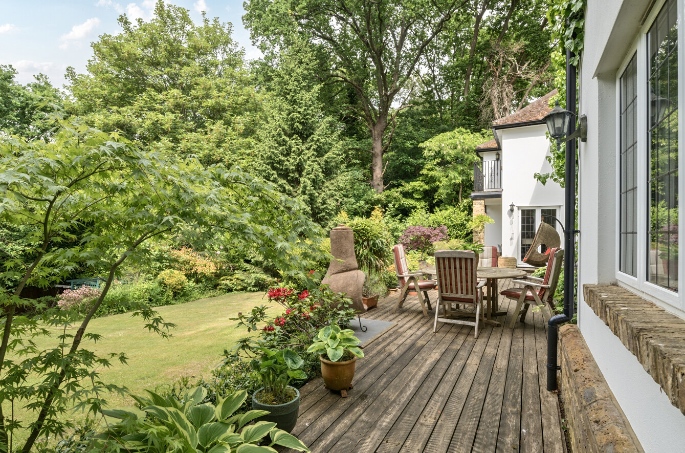 The tranquillity continues to the rear where brilliantly broad terraces are exceptional places for al fresco dining or to simply sit back, relax and unwind while you admire the idyllic gardens that stretch out before you.